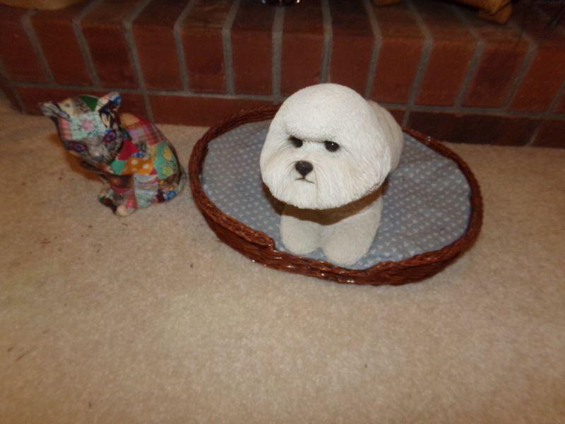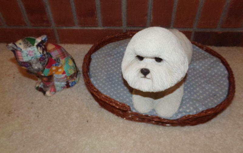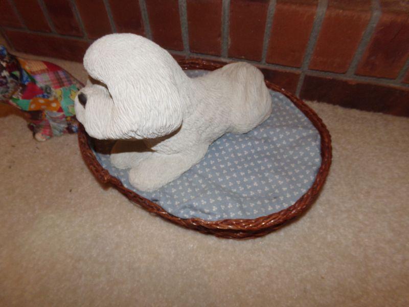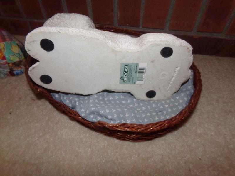SANDICAST 10" POODLE IN WICKER BED AND PAPER MACHE CAT