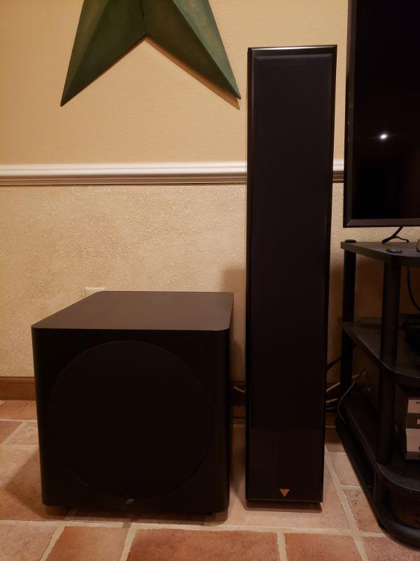Surround Sound 4 pcs... tall speakers (2) 6.75"x12"x38" ... square speaker (1) 16"x18"x17" ... wide speaker (1) 21"x6.5"x10.5"