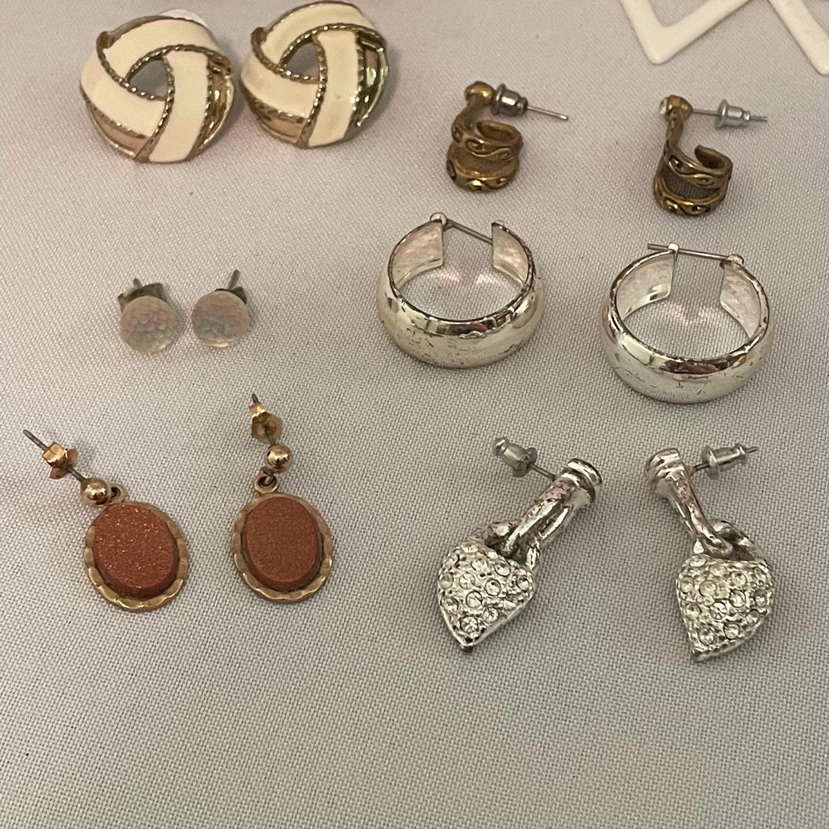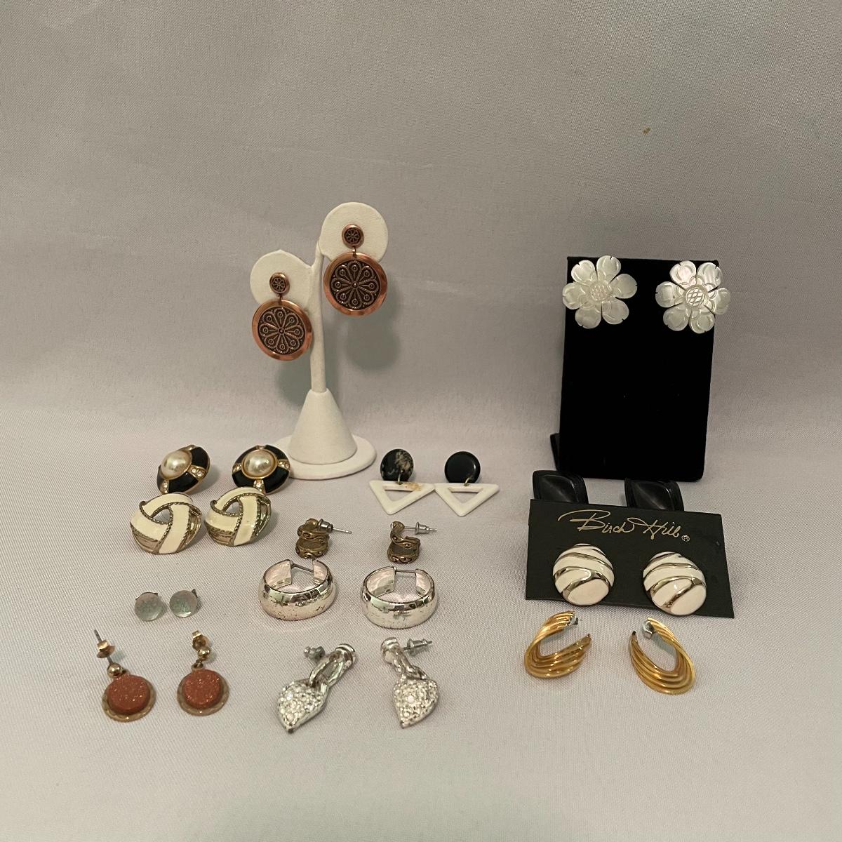 Thirteen fun and fashionable earring sets for pierced ears. Some appear to be copper, abalone, pearly and more! See images. Shipping available.