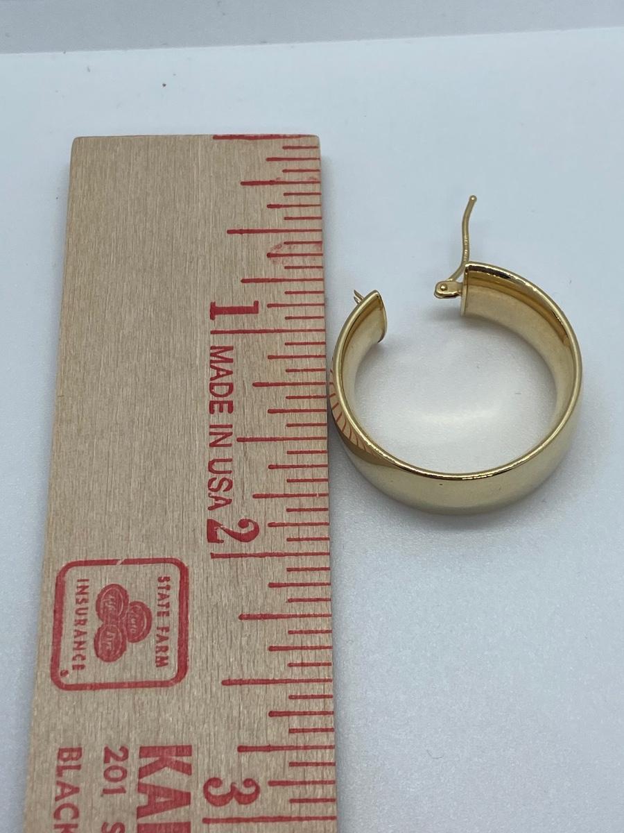 Stunning Hoop Earrings! 4.6 grams 14k. Please see all pictures as they are the best representation of the items. The pictures show condition, measurements if taken, and what is included in the lot. Due to the large amount that we photograph and the time frame, we are not always able to take measurements. All items unless noted, are pre-owned and have been used.