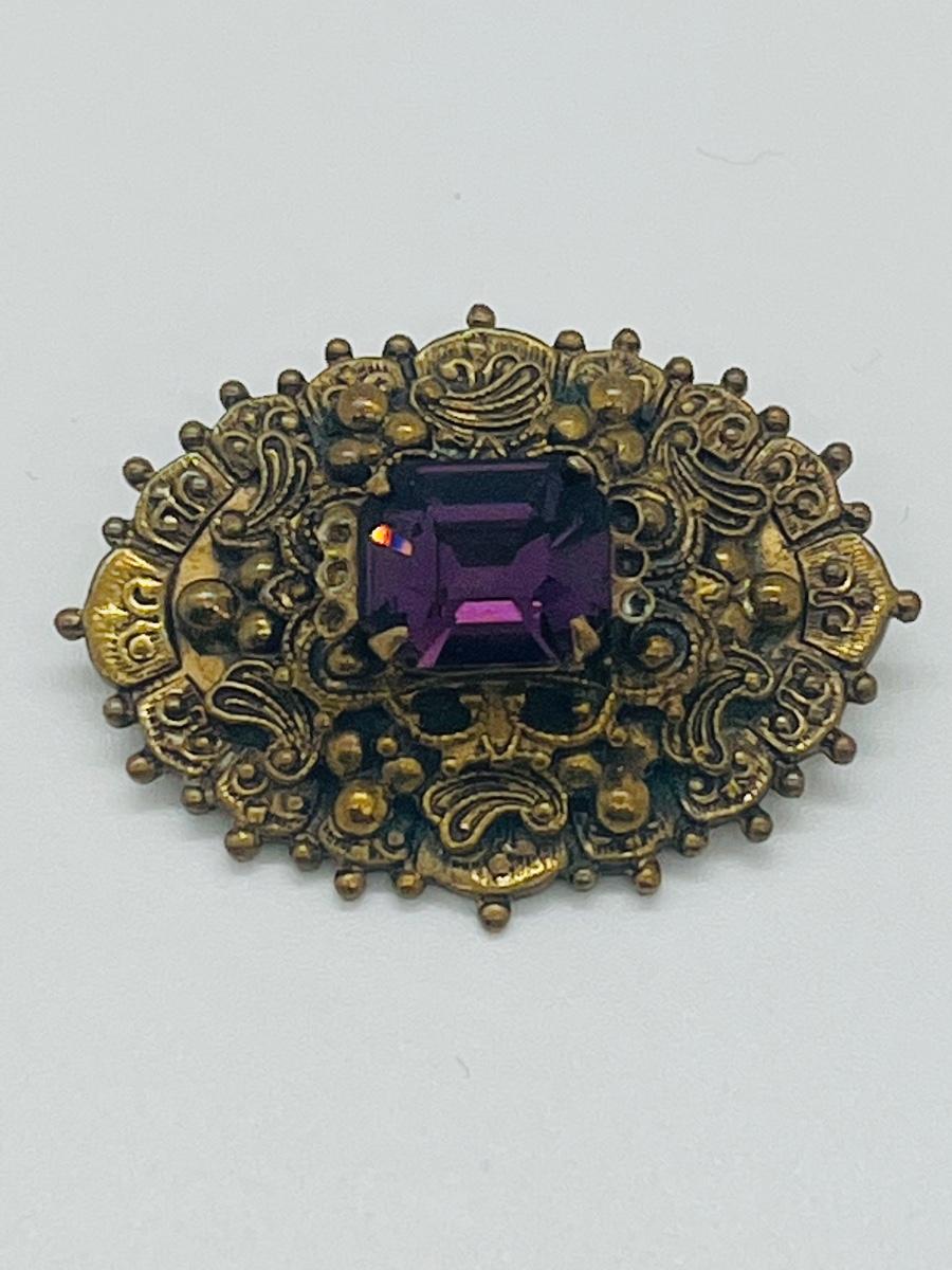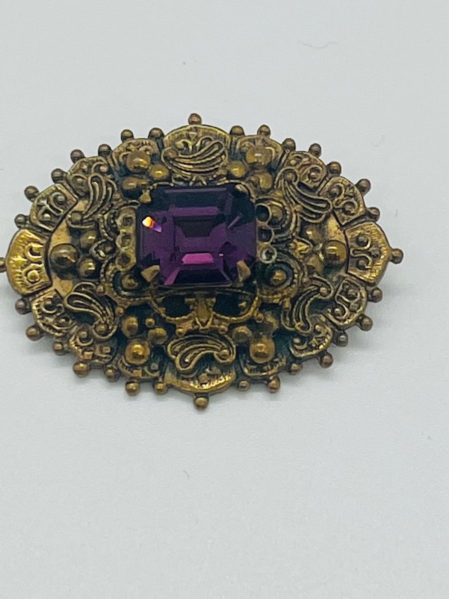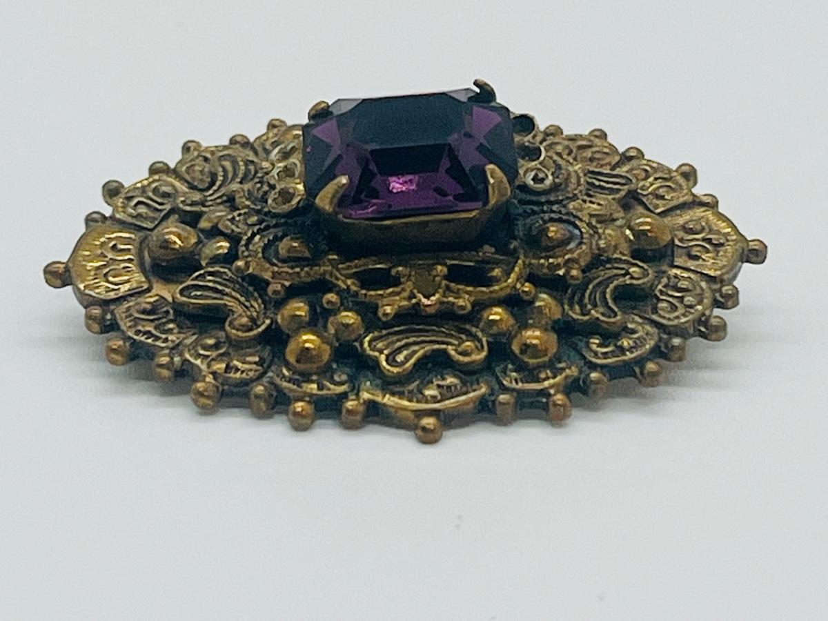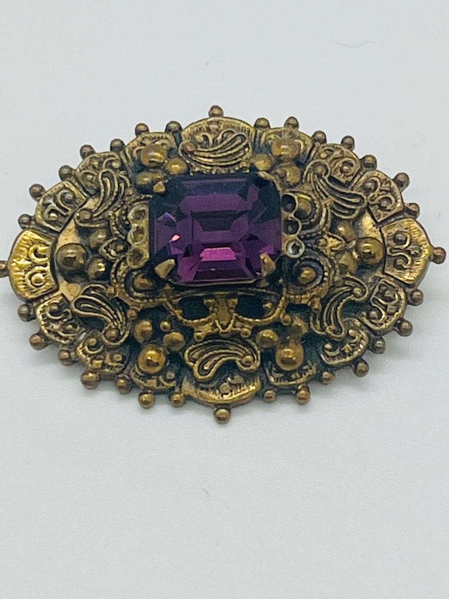 Lot 72: Ornate Antique/Vintage Costume Brooch w/ Purple Glass Center