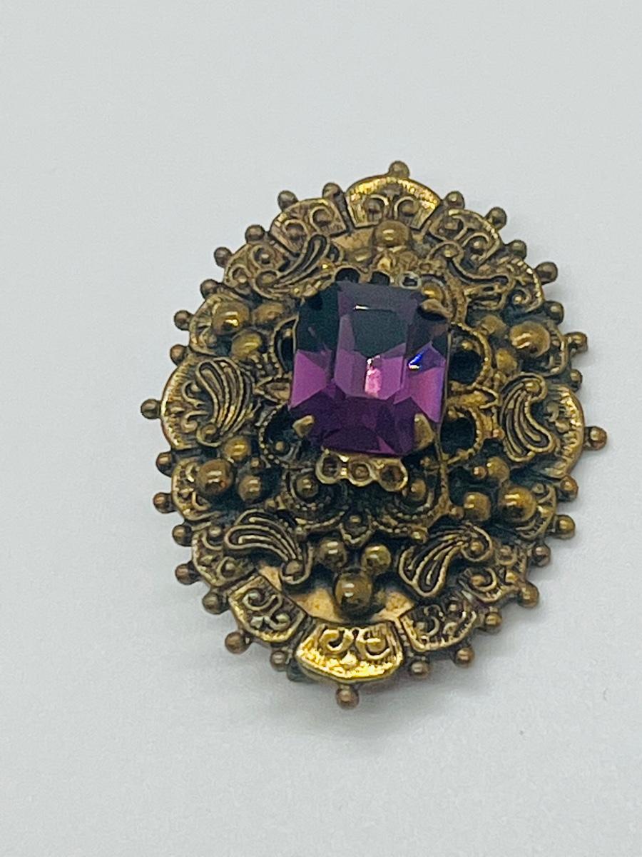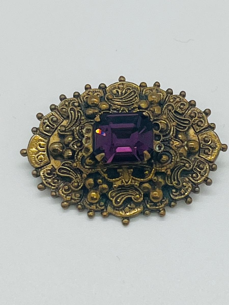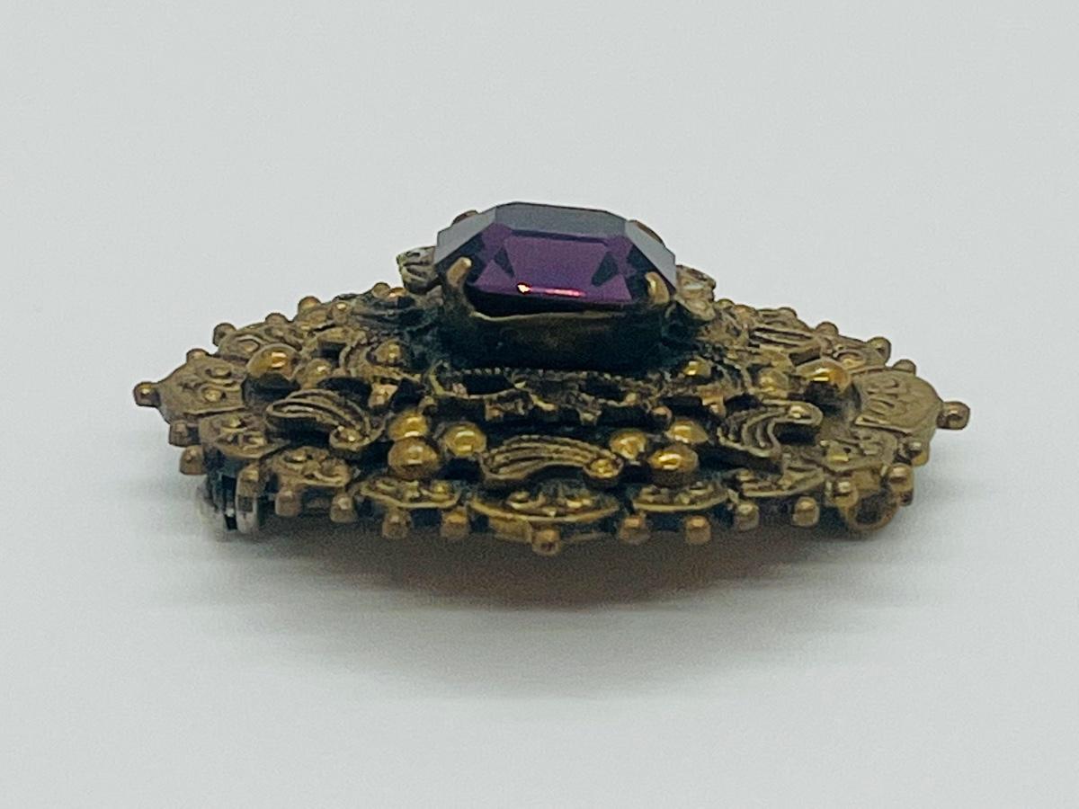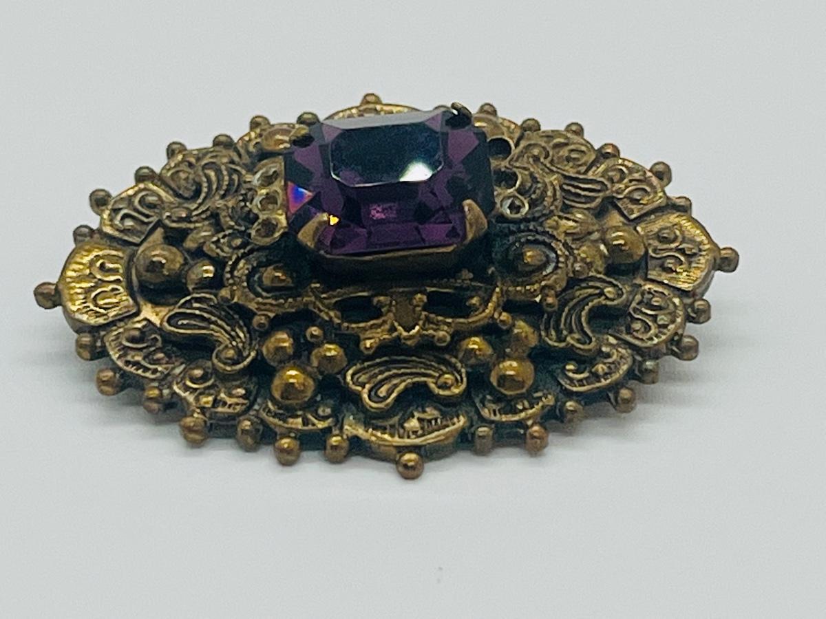 Lot 72: Ornate Antique/Vintage Costume Brooch w/ Purple Glass Center