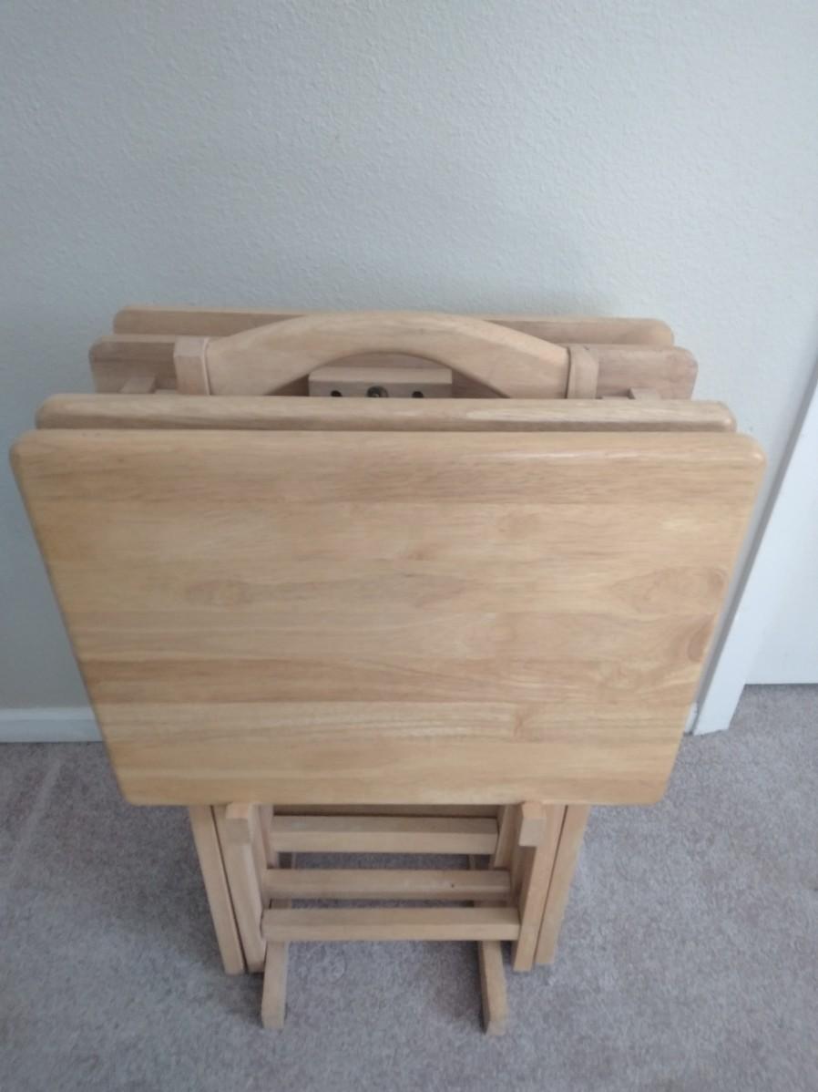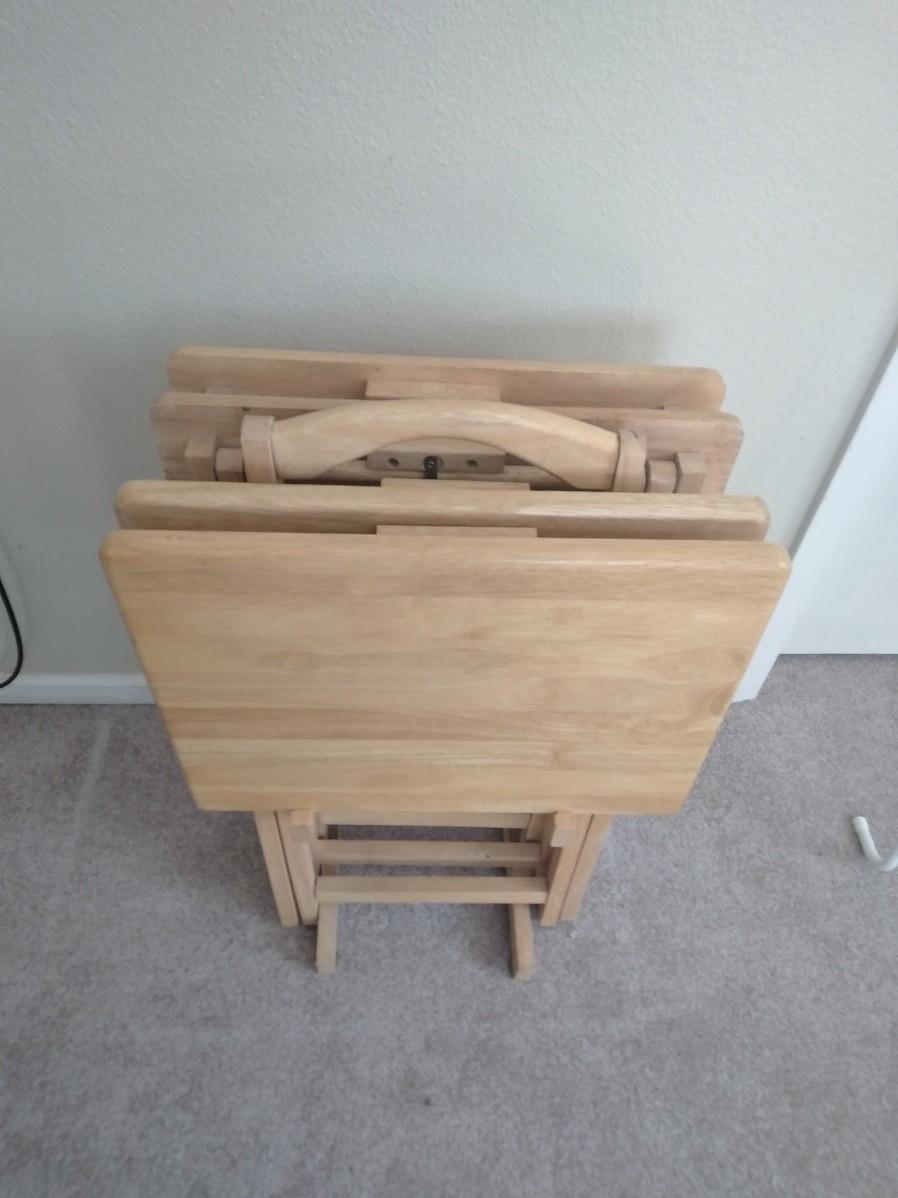 LOT 72 FOUR OAK TV TRAYS ON A STAND