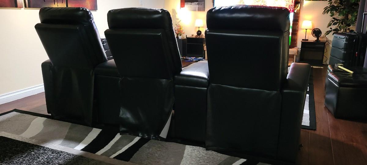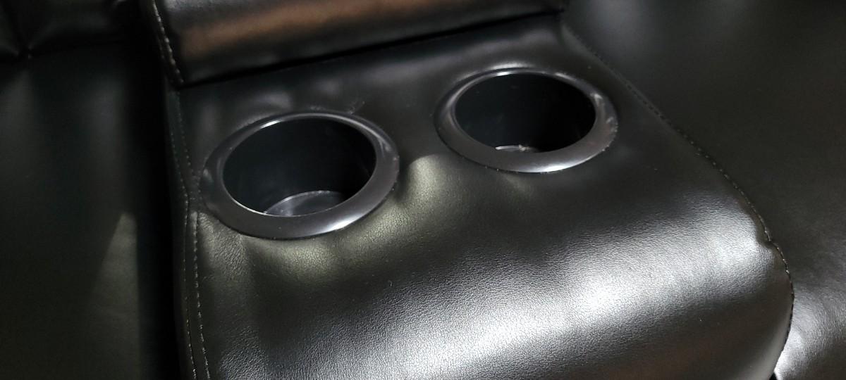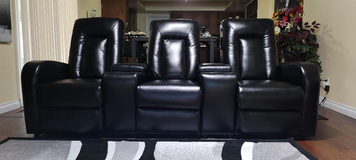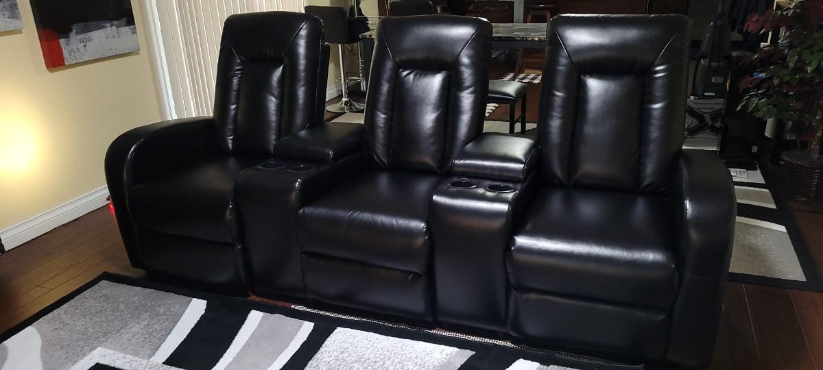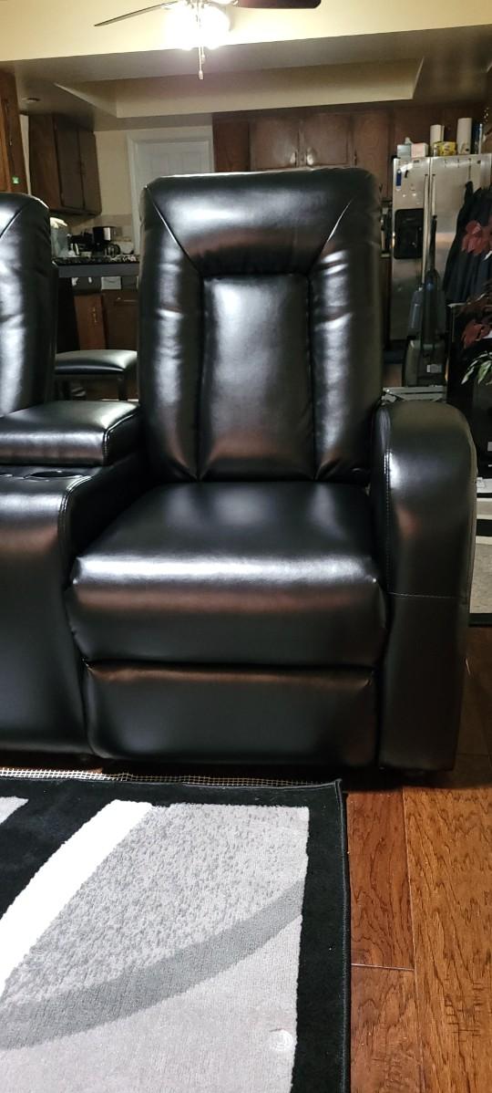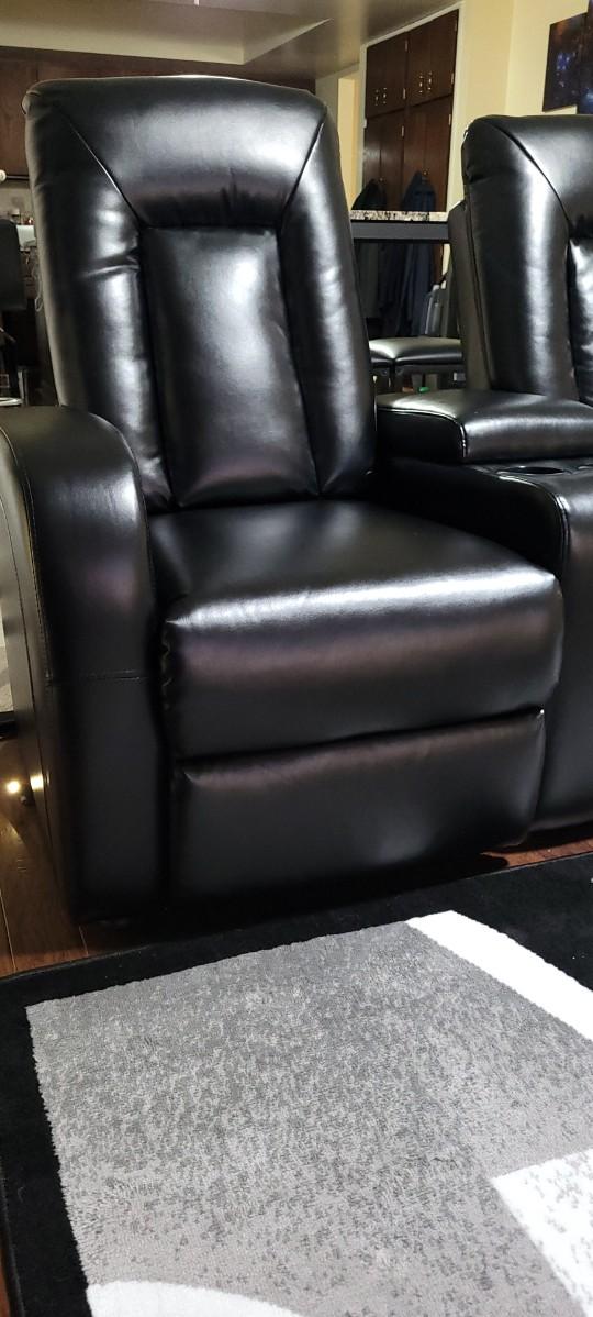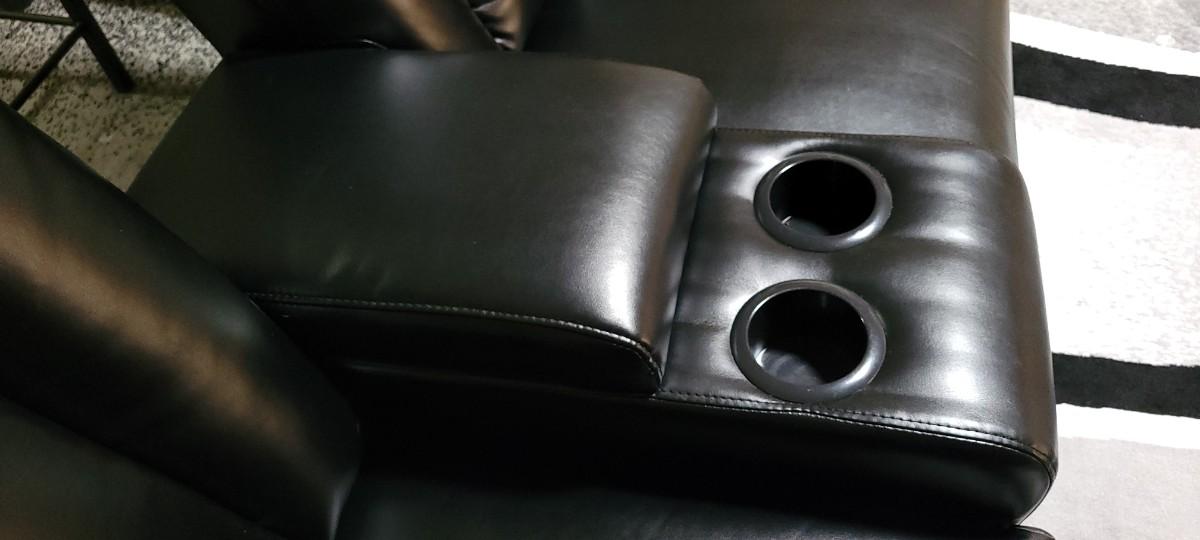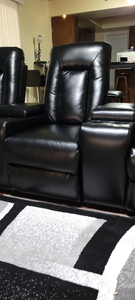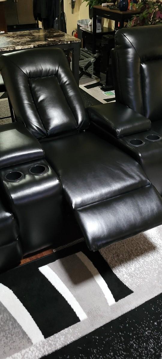 Lot 72: Leather Black Recliner Combo w/ Storage and Cup Holders