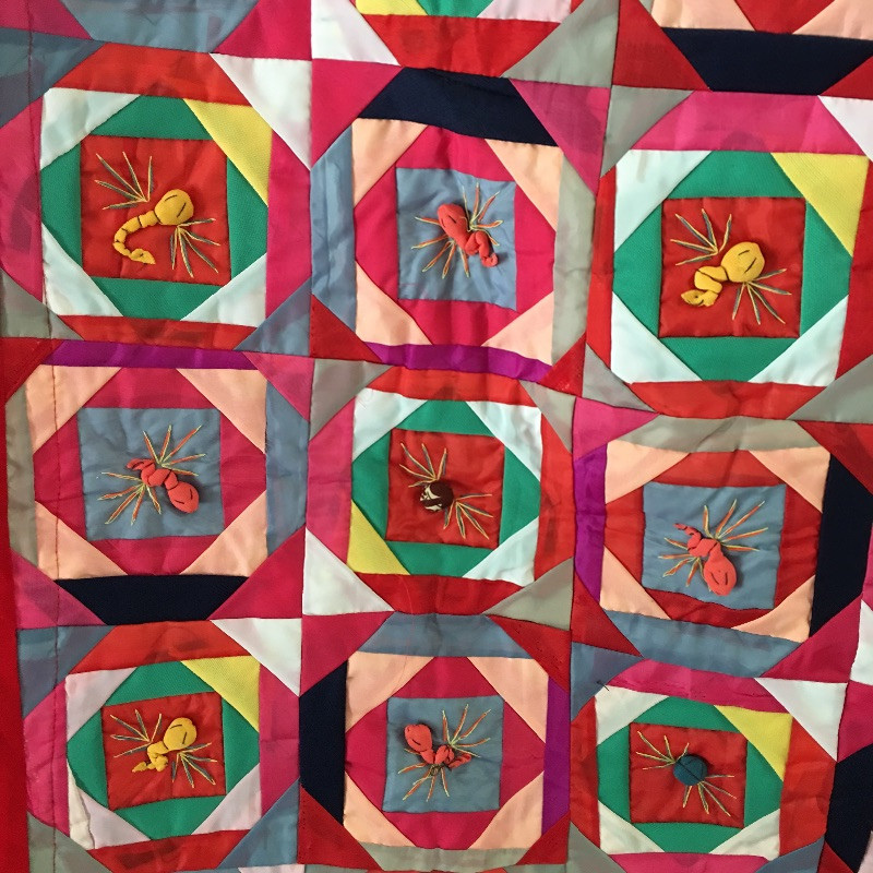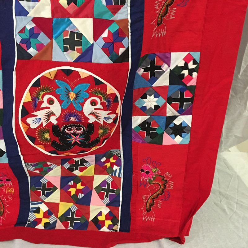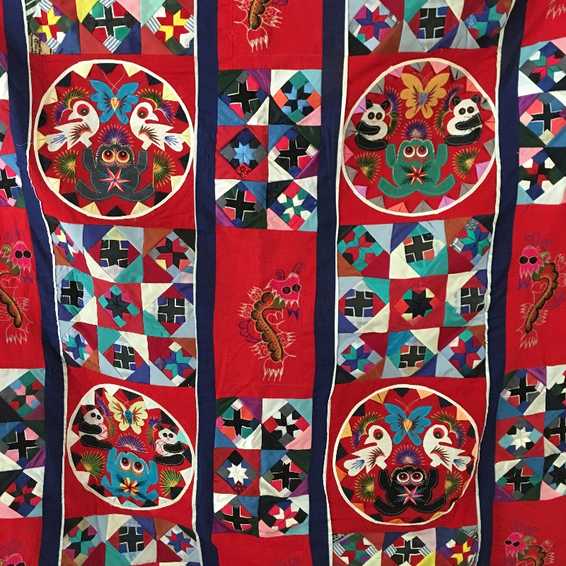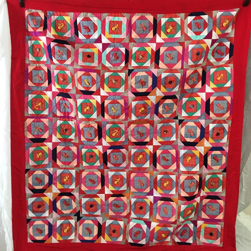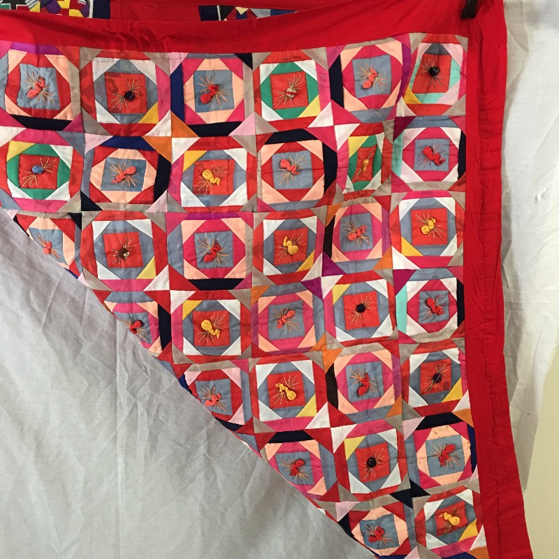 Simply stunning, this red Asian quilt has unique designs on both sides, see images. You won’t want to miss out on this beauty unless you have Arachnophobia. Quilt measures 54” x 60”.