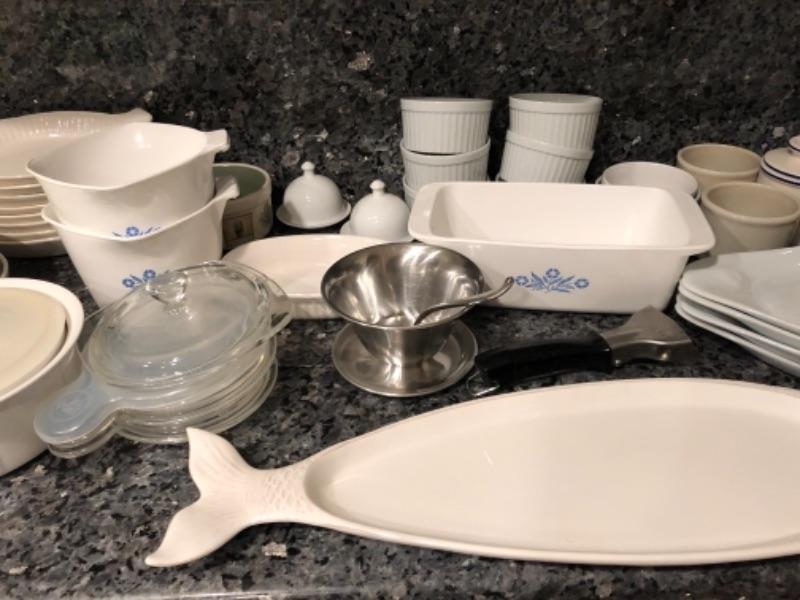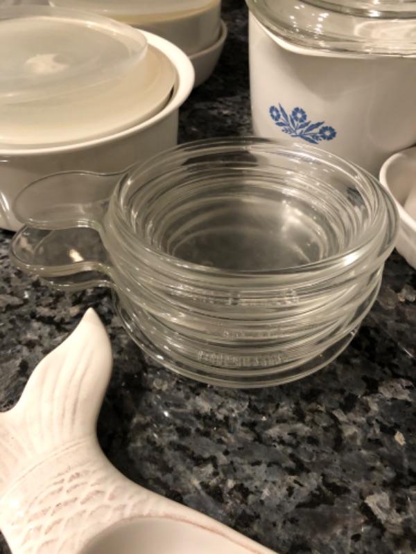 Lot 72. Assorted glass baking dishes with lids (Corning, Cordon //Bleu)--WAS $75““NOW $56.25
