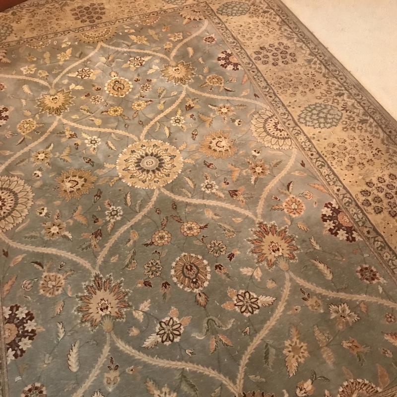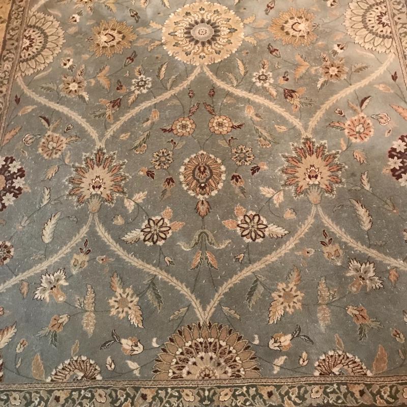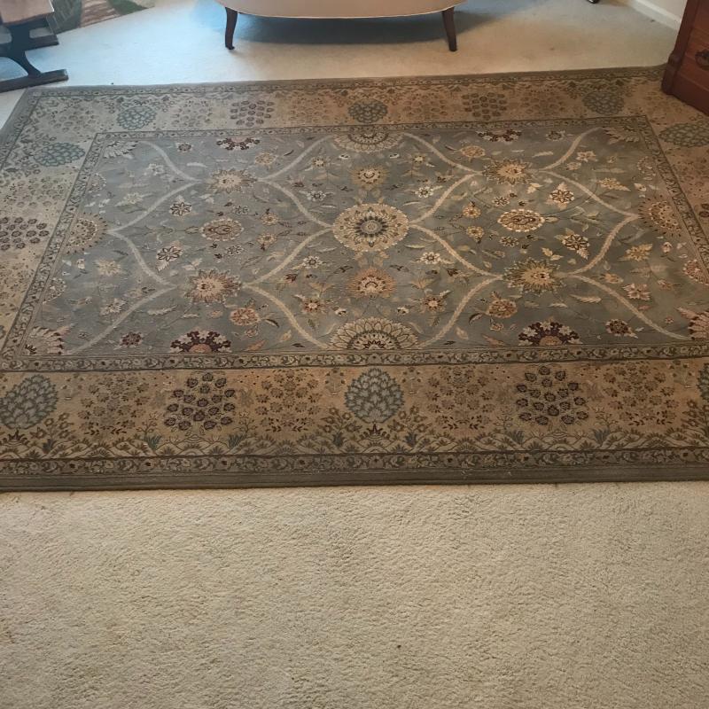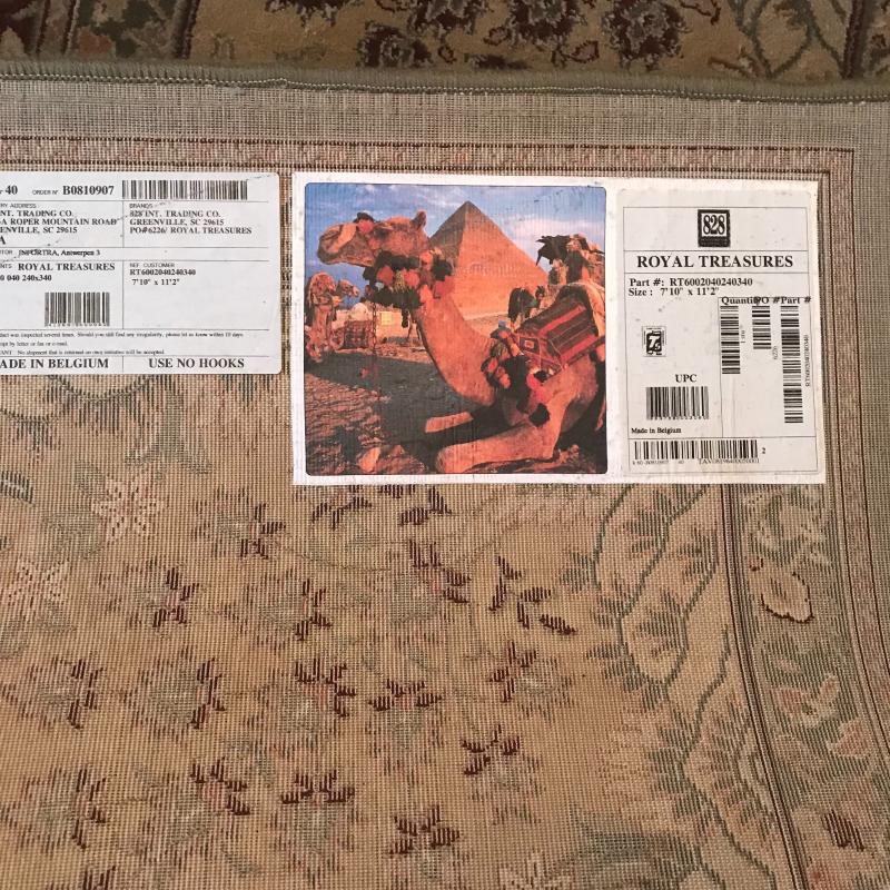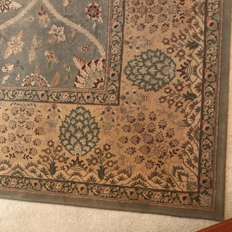 Neutral colors of mostly tan, grey, burgundy and pale pink. Rug measures 7’10” x 11’2”. Rug has a little pilling in the middle (please see photos). This item is available for local pick up in Asheville, NC only.