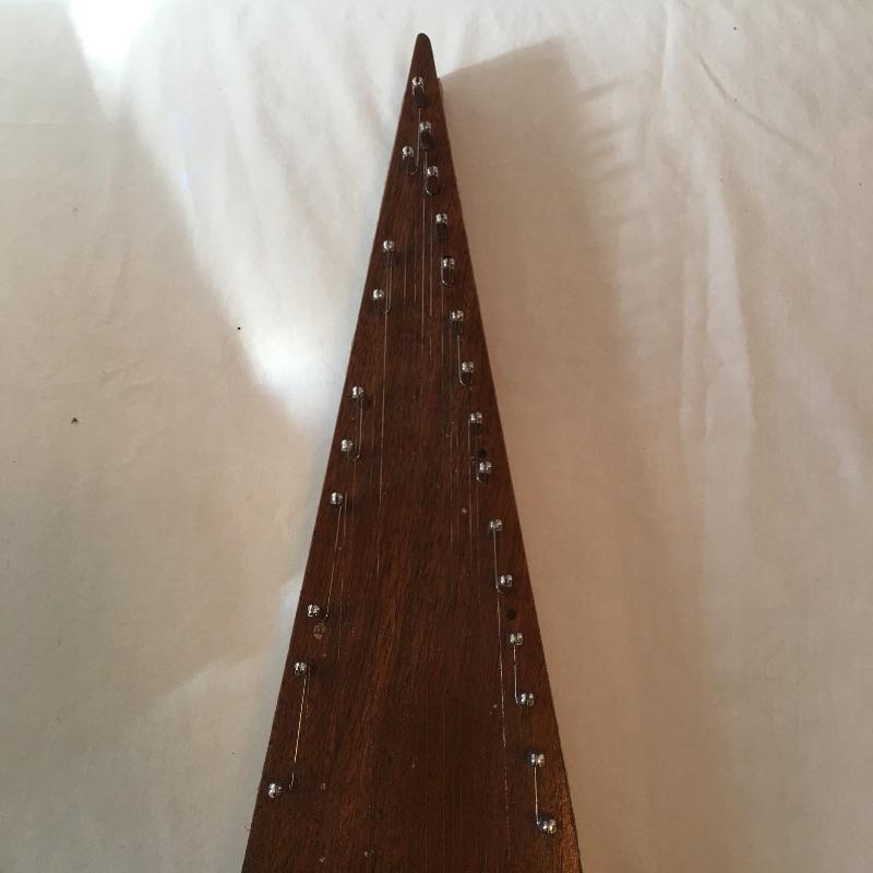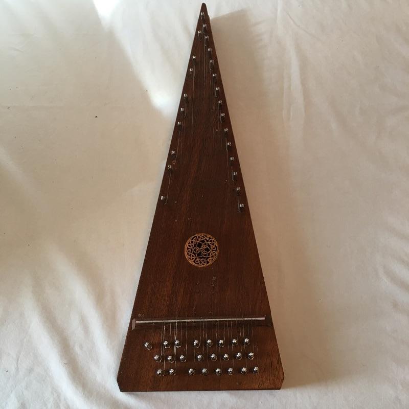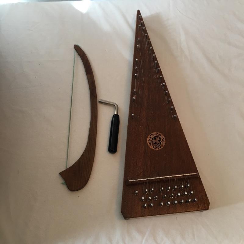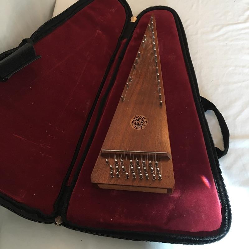 Bowed Psaltery with case. T. K. O’Brien’s bowed psaltery with bow, tuning key, rosin and case. A great find for all you people interested in folk instruments. Psaltery measures 6.25” x 19”.