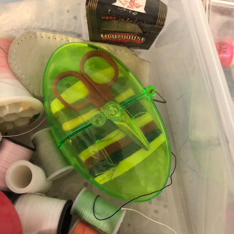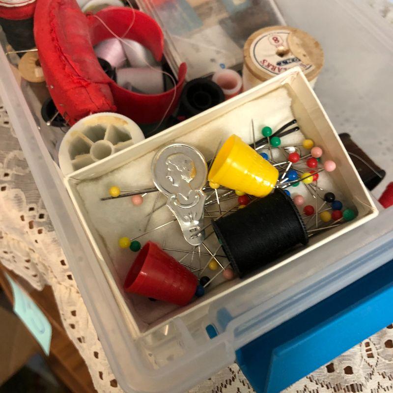 There is a thimble and a few other goodies in addition to a lot of thread. Please view the pictures for more information.