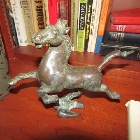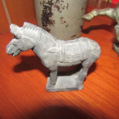 ANTIQUE CLAY HORSE WITH A CHIP TO ITS EAR