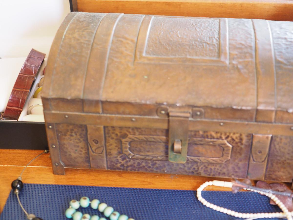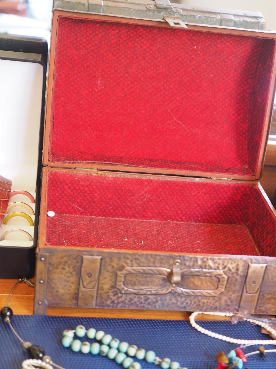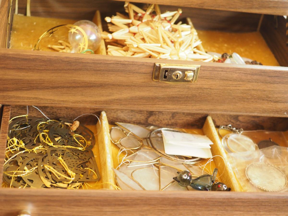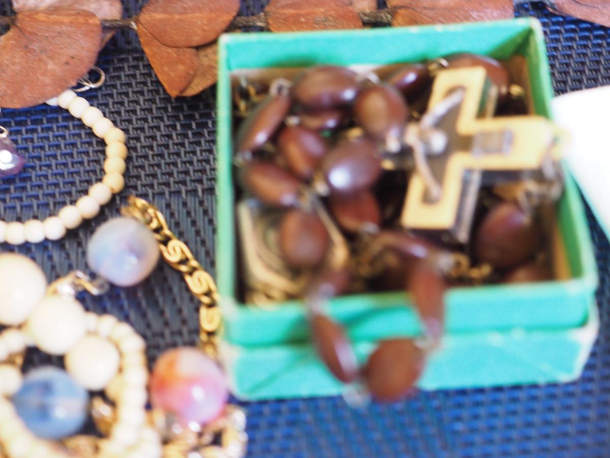 Lot 72 Costume Jewelry, vintage mirrors, gloves hats, jewelry boxes, magnifying glasses, fresh water pearls and other semi precious beads along with German straw ornaments.