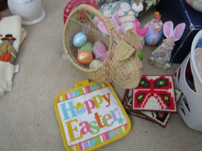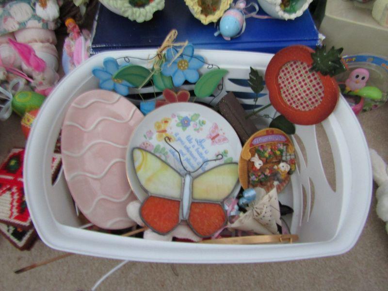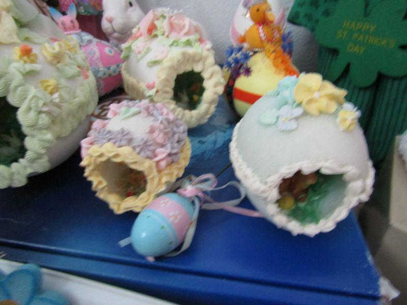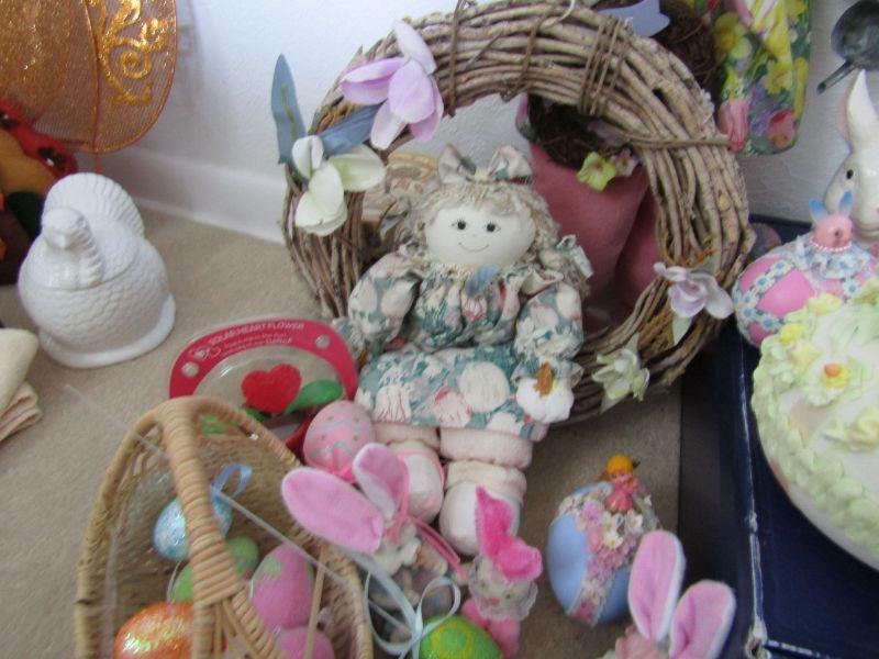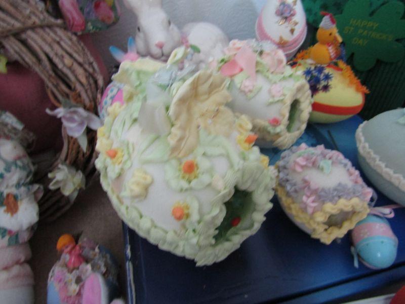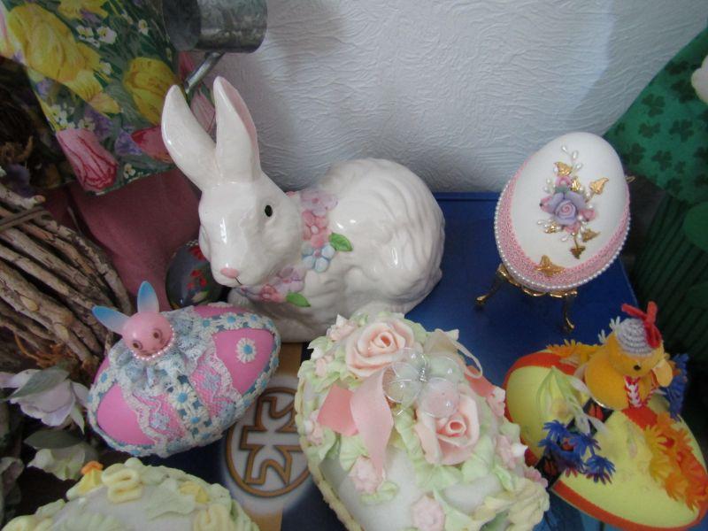 HANDMADE SUGAR EASTER EGGS, EASTER FIGURINES, WREATH, PLUSH DOLLS, RABBITS AND OTHER DECORATIONS.