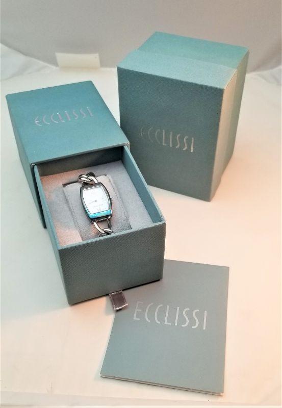 Ecclissi Sterling Silver (Case only) Ladies Wrist Watch - unused in original box - has been stored - may need a battery. Complete as shown here.