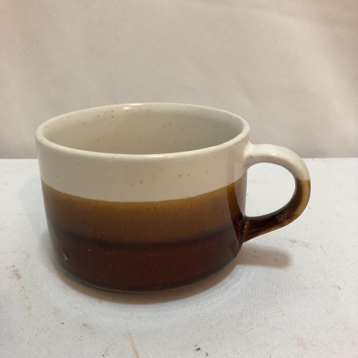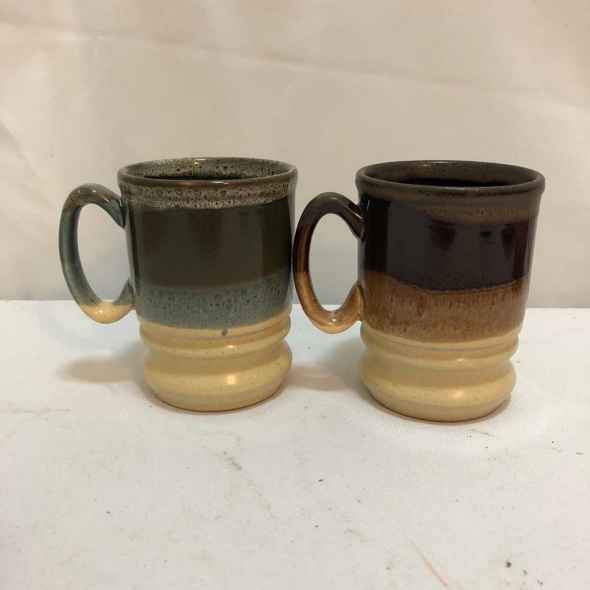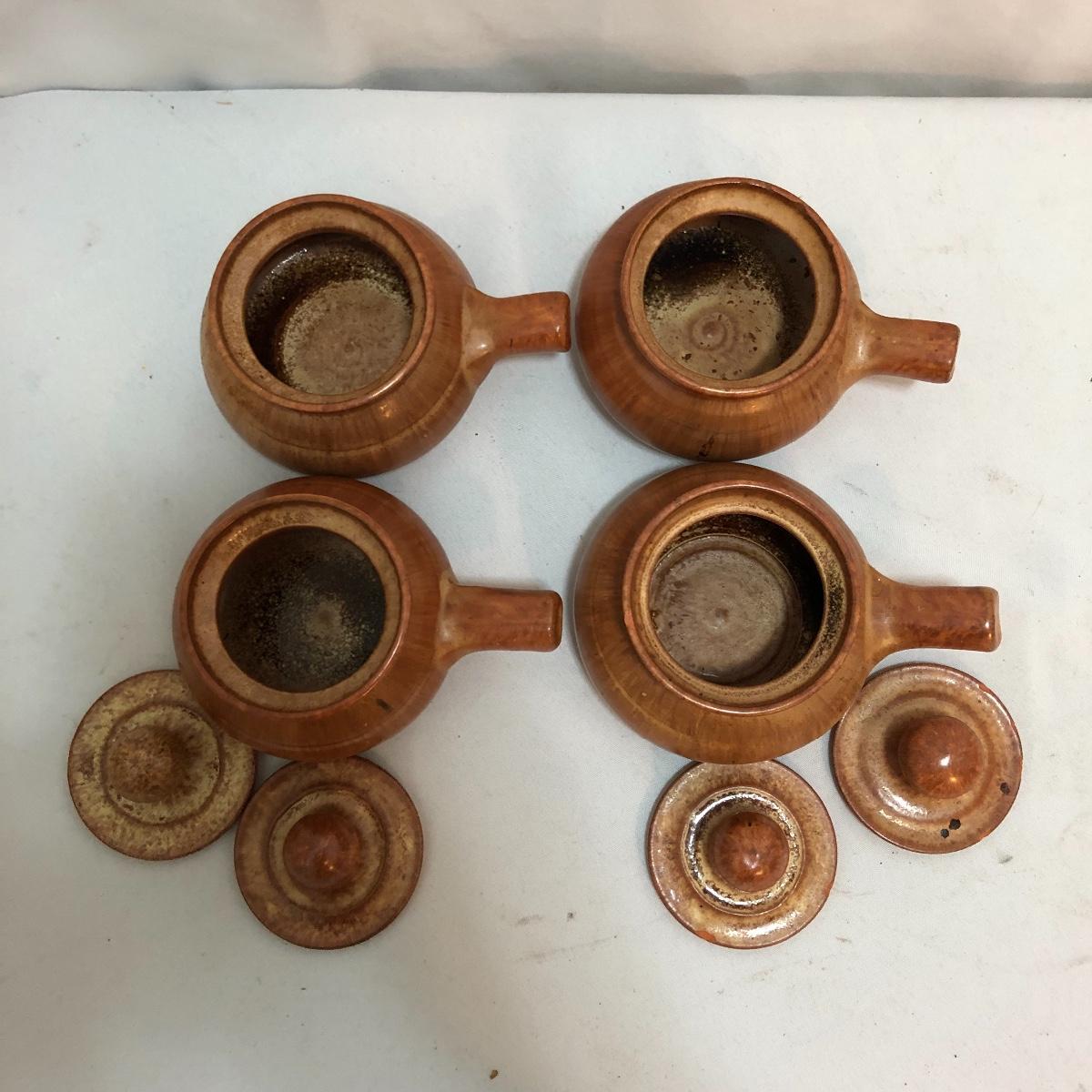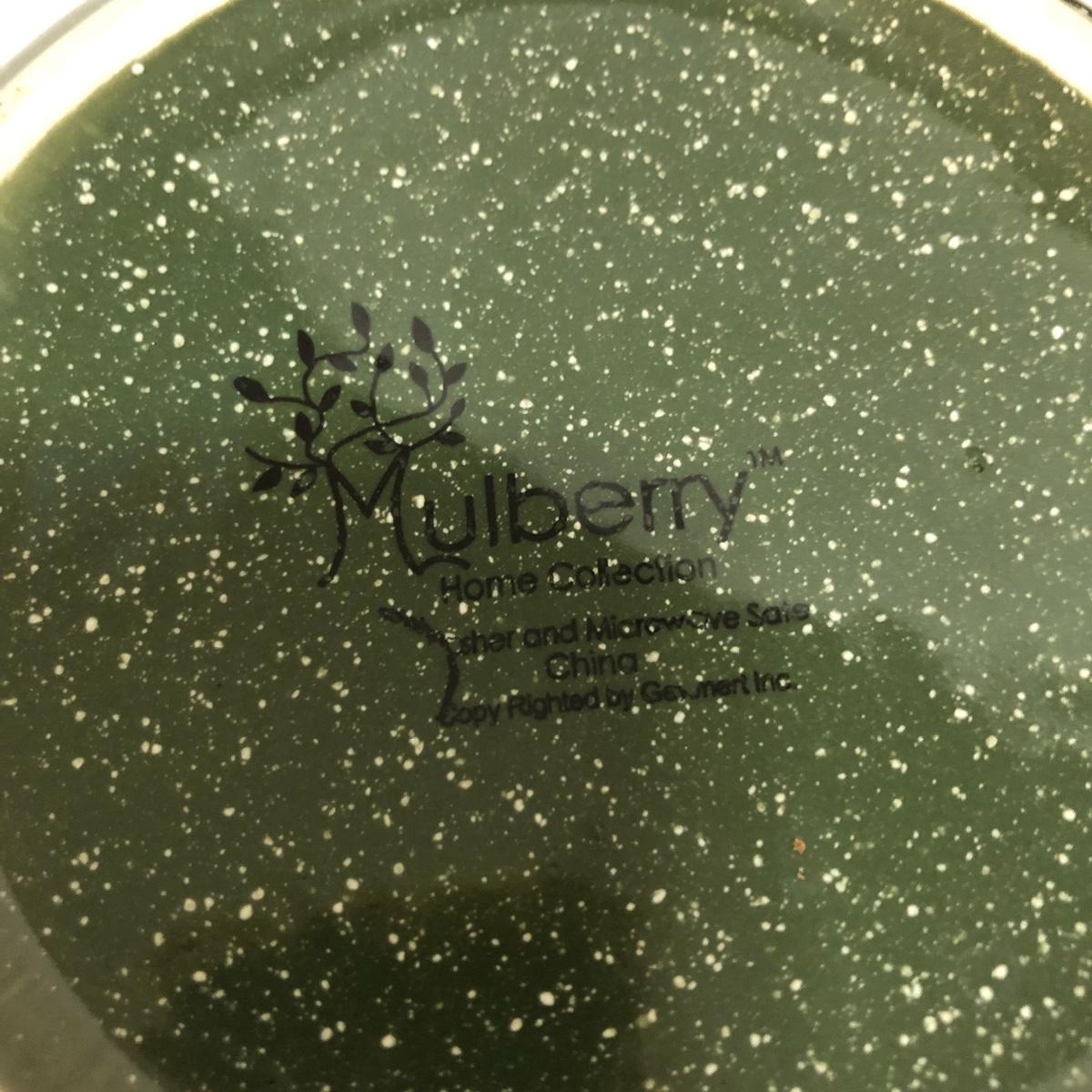 A nice selection for your college student. Lot includes four small crocks with lids that look deceivingly like wood but are crocks also, three Mulberry soup bowls, dish with lid, two English coffee cups and a unmarked mug.