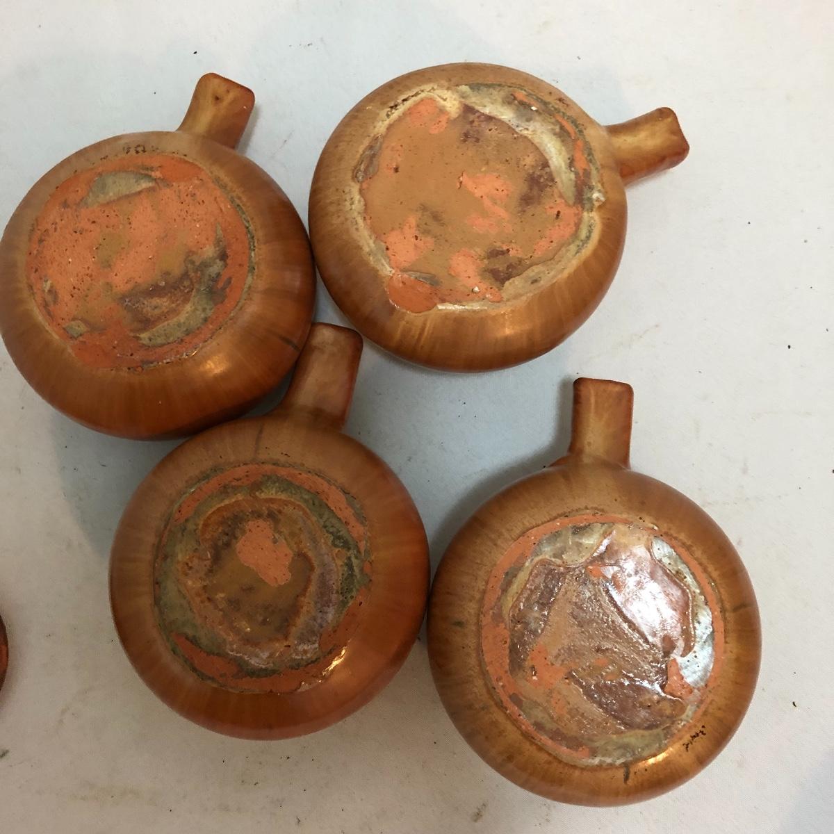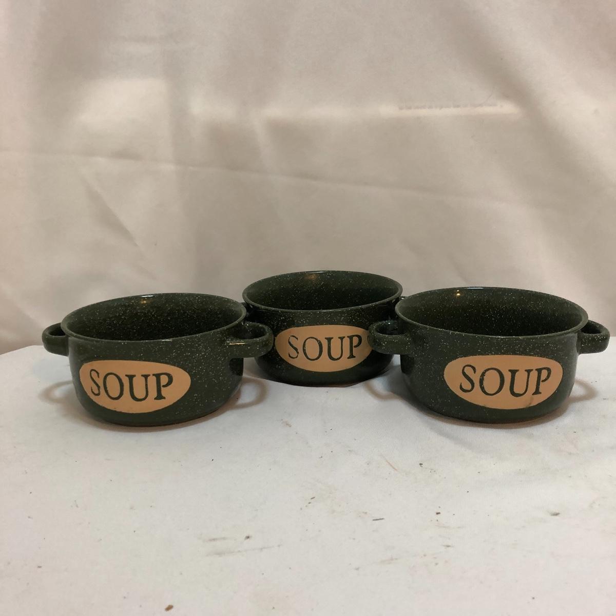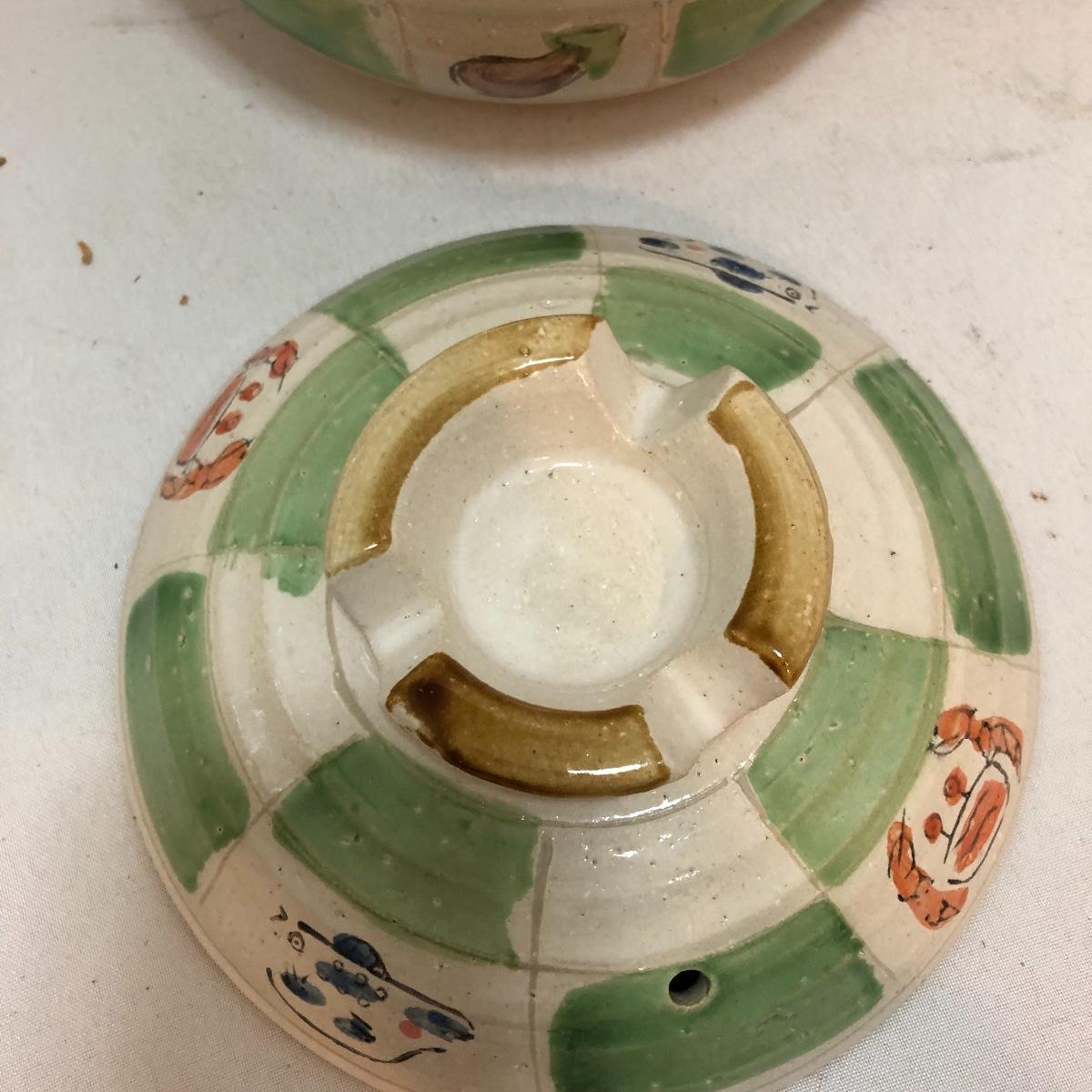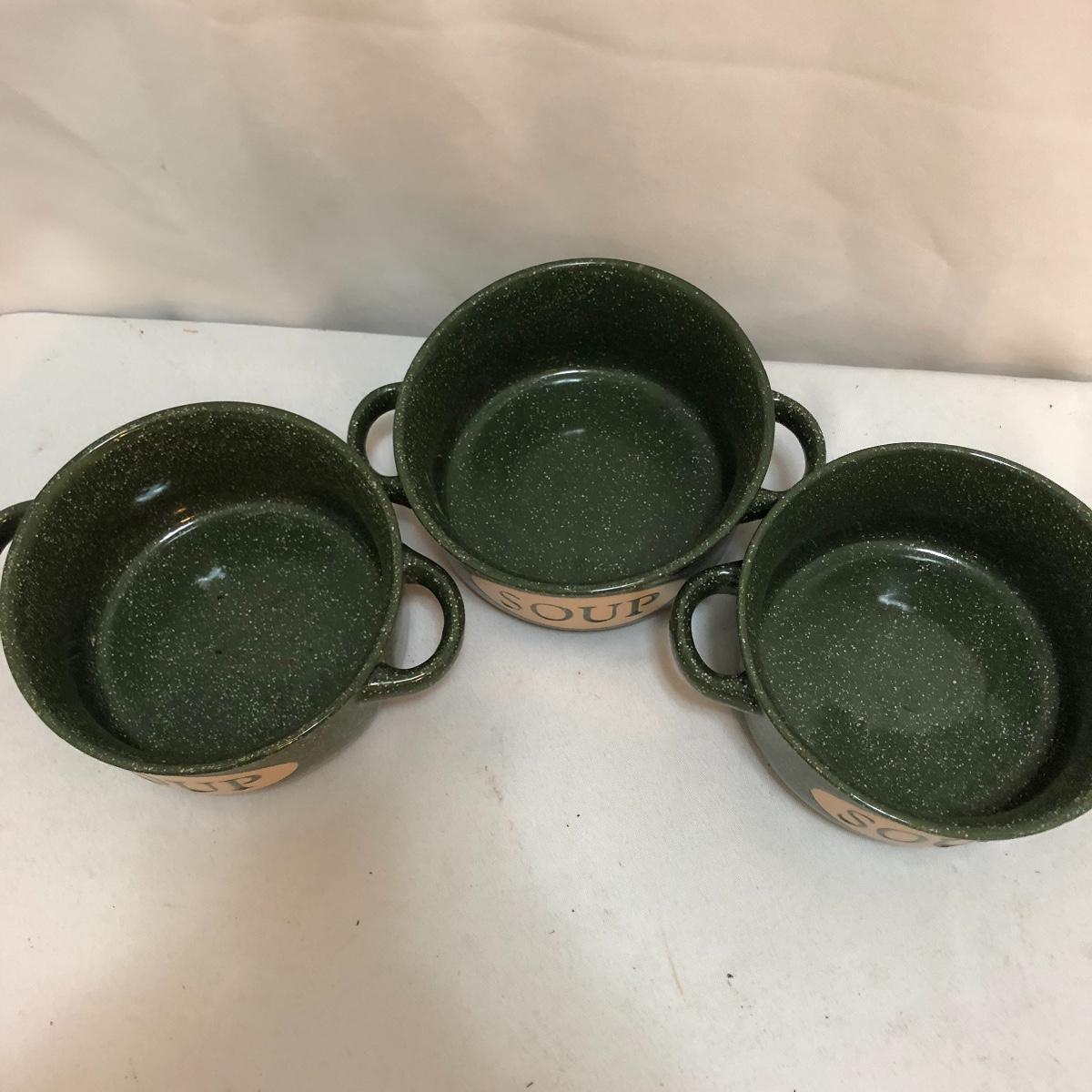 A nice selection for your college student. Lot includes four small crocks with lids that look deceivingly like wood but are crocks also, three Mulberry soup bowls, dish with lid, two English coffee cups and a unmarked mug.