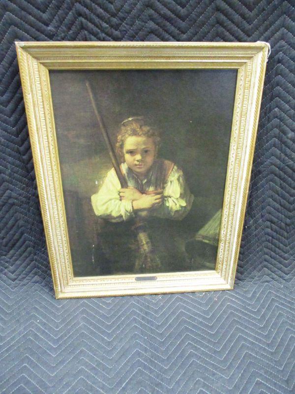 Lot 72 - Framed "A Girl with a Broom" Rembrandt Print