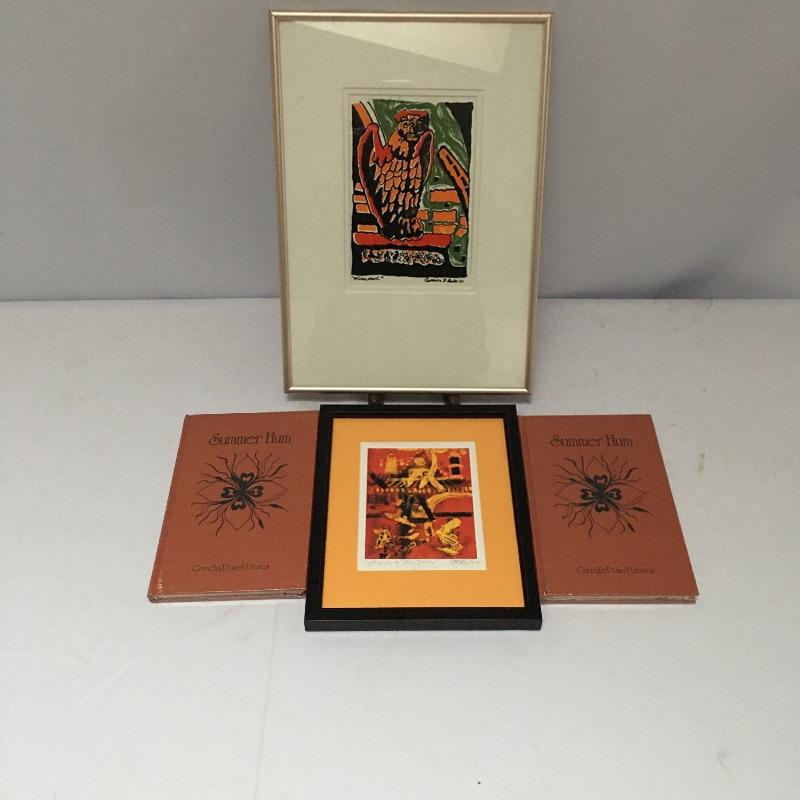 Pair of framed and signed artworks by Cornelia Baker and two copies of Summer Hum by Cornelia Draves that are still wrapped in original cellophane. Sit back and enjoy the poetry while gazing at the beautiful artwork. Largest frame measures 11.5” x 16”.