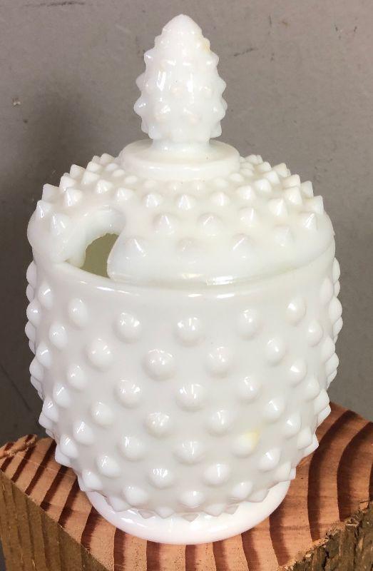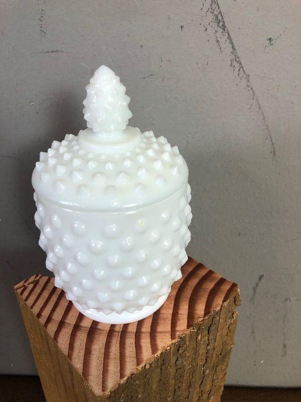 Lot #72 Hobnail - Milk Glass - Relish or Jelly with lid