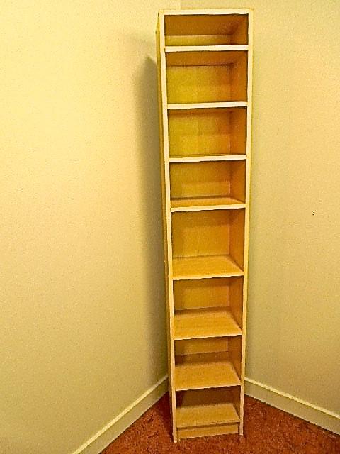 Ikea tall display or book shelf. Measures 72 x 13x 10. Seven adjustable height shelves. Made of vinyl covered particle board. No notable damage.