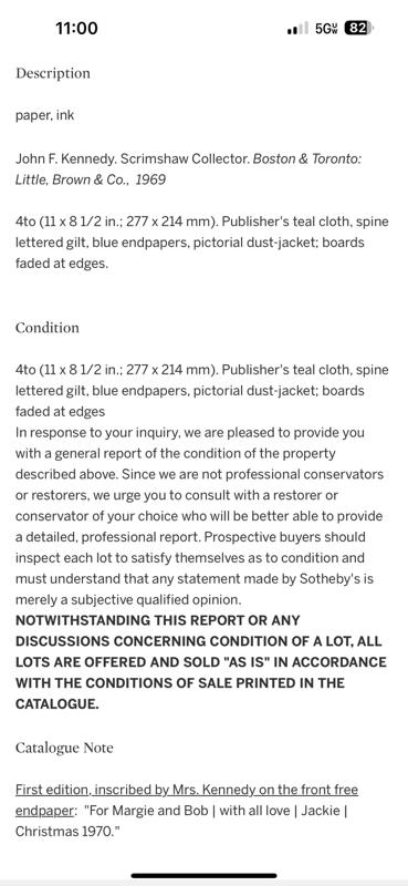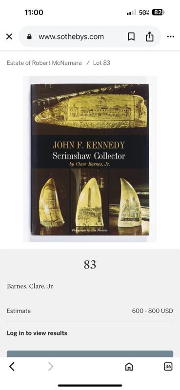 Lot 72 John F. Kennedy scrimshaw collector book gift from Jacqueline Kennedy to Robert McNamara