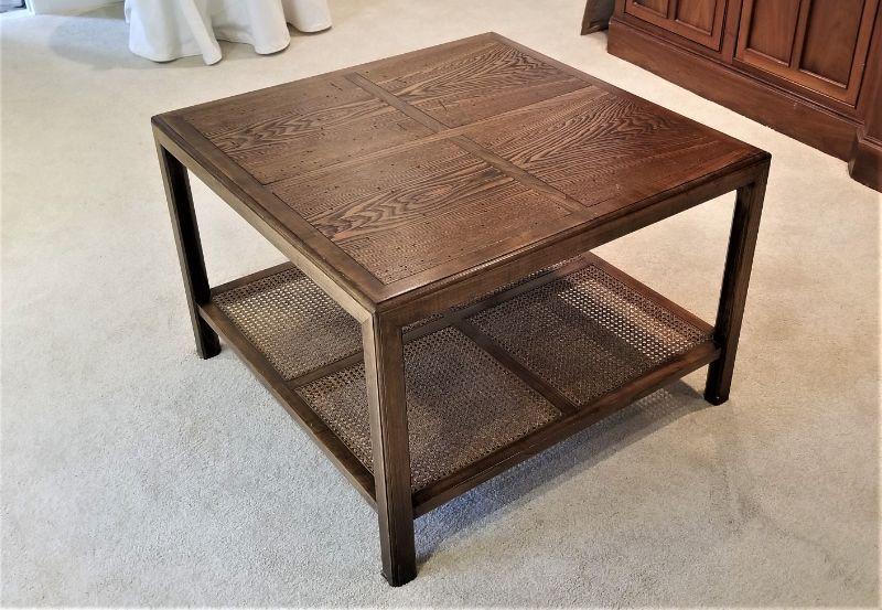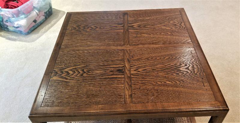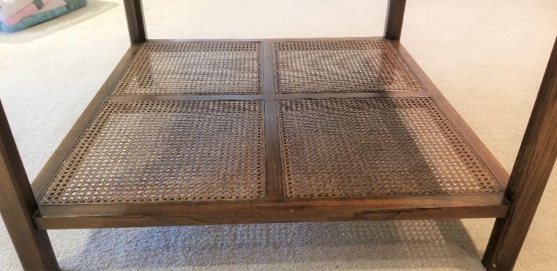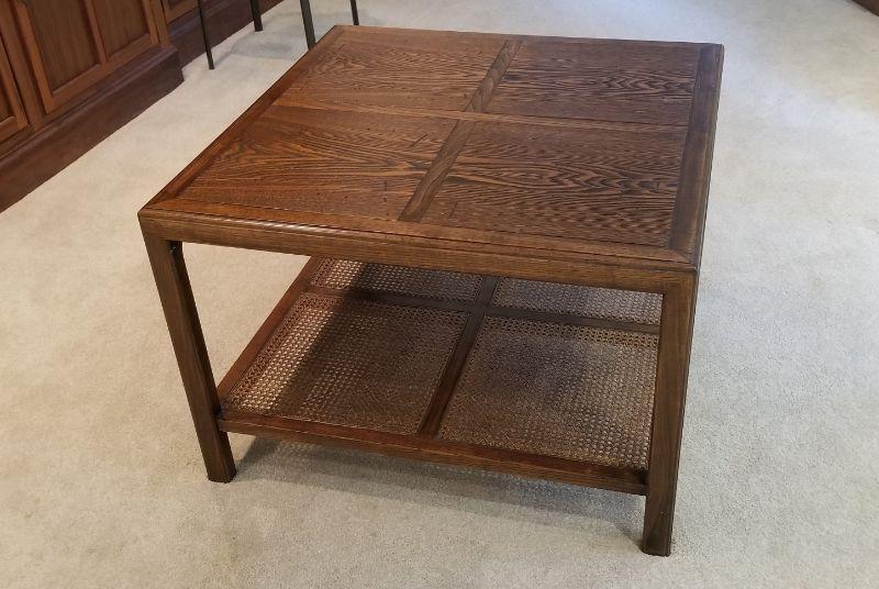This large lamp table is in excellent condition - nice cane bottom. Measures 32" x 32", 22" tall. Solid.