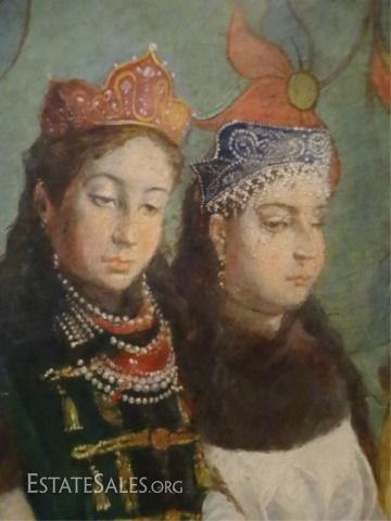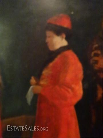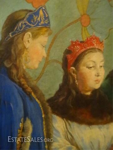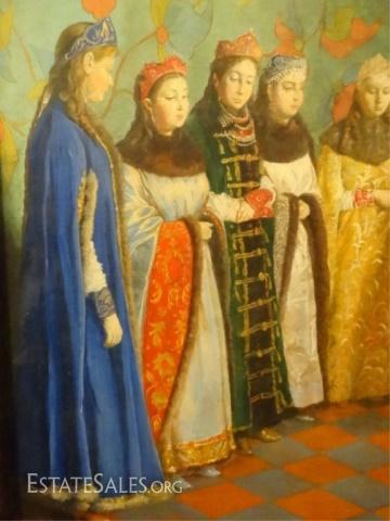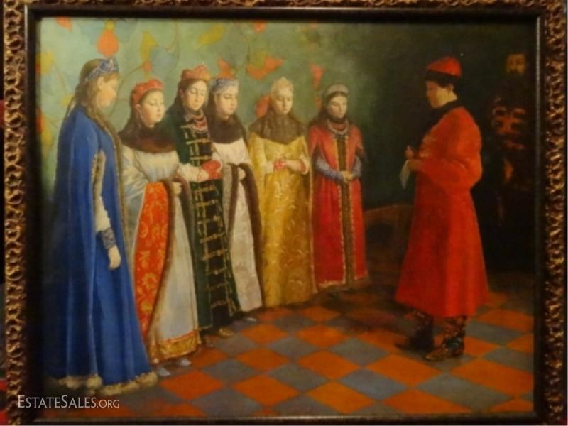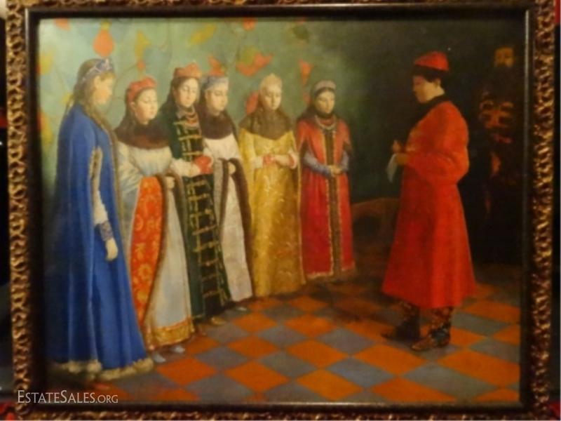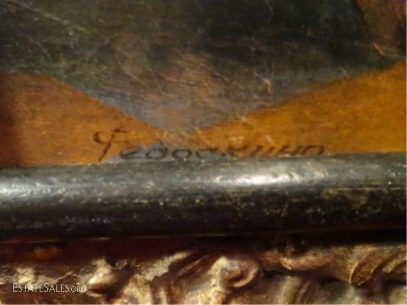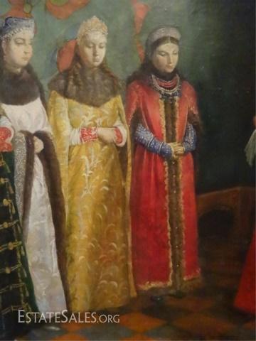LOT 72: LARGE RUSSIAN OIL PAINTING ON BOARD, FIGURAL SCENE, SIGNED LOWER RIGHT, SIGNATURE OBSCURED BY FRAME, EXCELLENT CONDITION, FRAMED SIZE 37" X 30", SKU010.02 H60