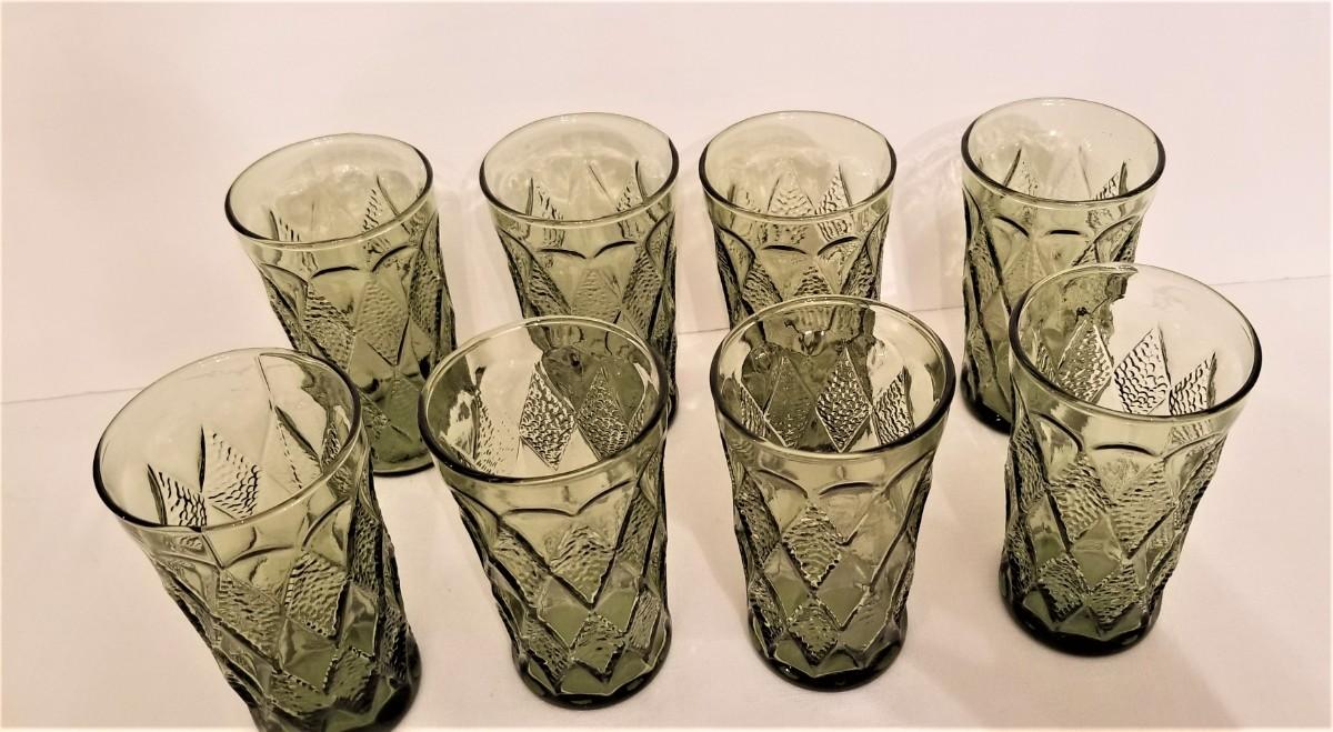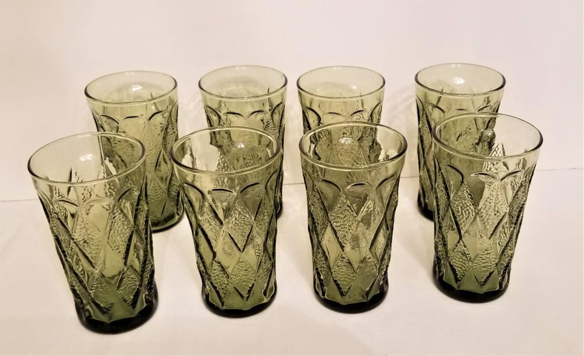 Lot #72  Lot of 6 Mid Century Avocado Green Drinking Glasses