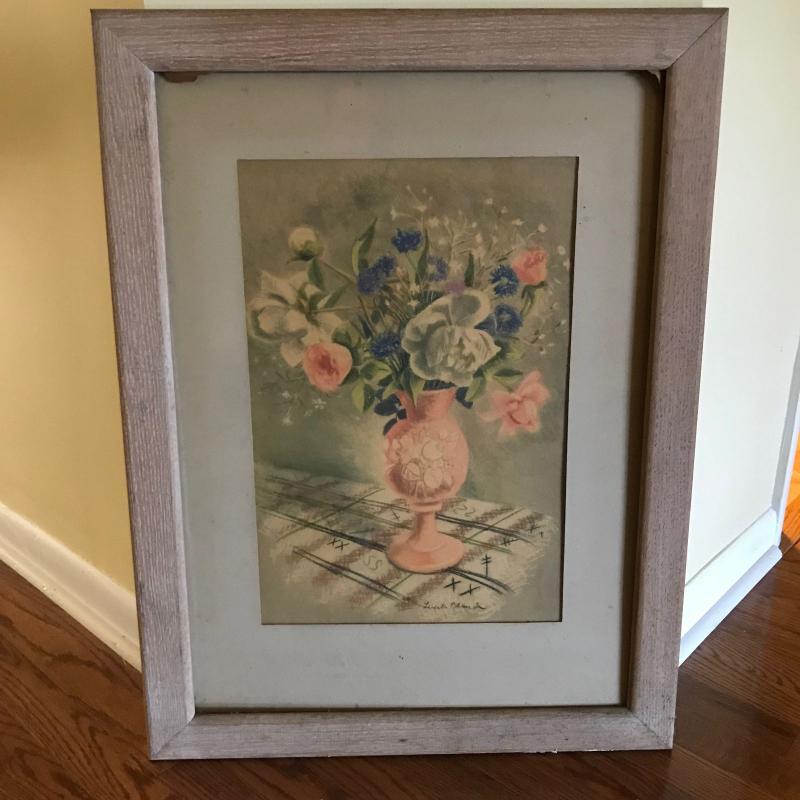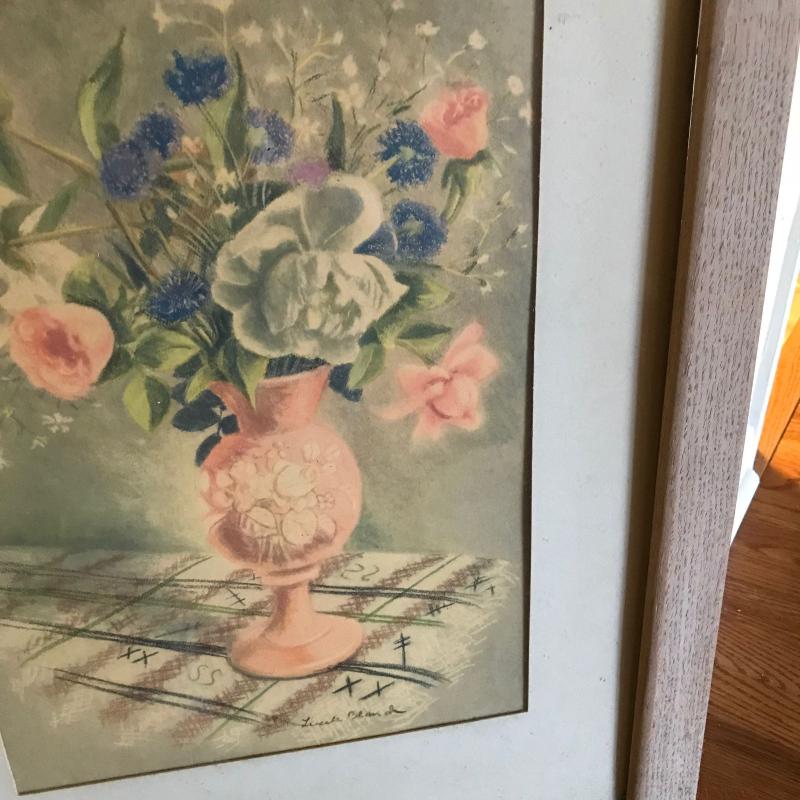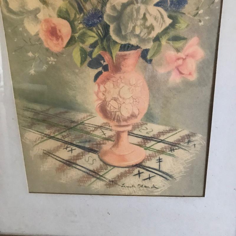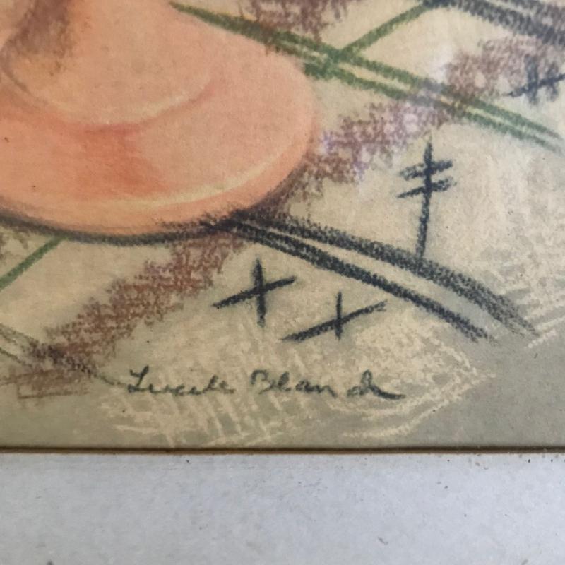 Framed print by Lucile Blanch. Frame is support is missing in back and would need repair to use. Measures 25 x 18” Shipping Available but please note that artwork is usually costly to ship. Please get a quote from UPS prior to bidding.