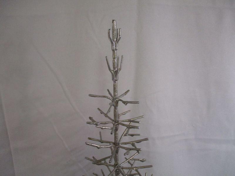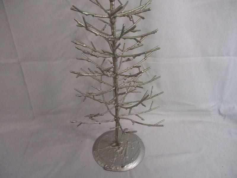 This metal tree is about 21.5" tall and the branches are "shapeable". It would look good as is, or being used as a jewelry tree.