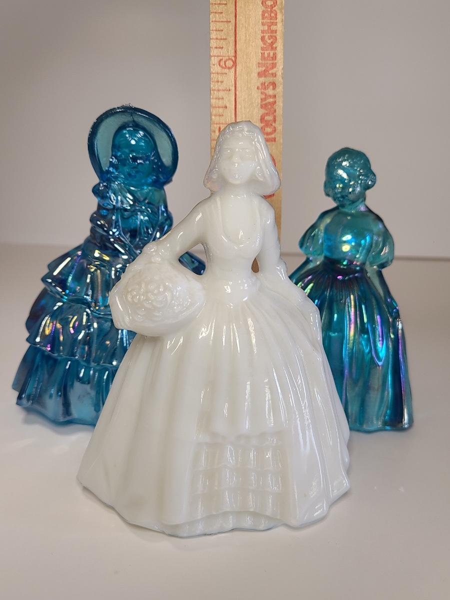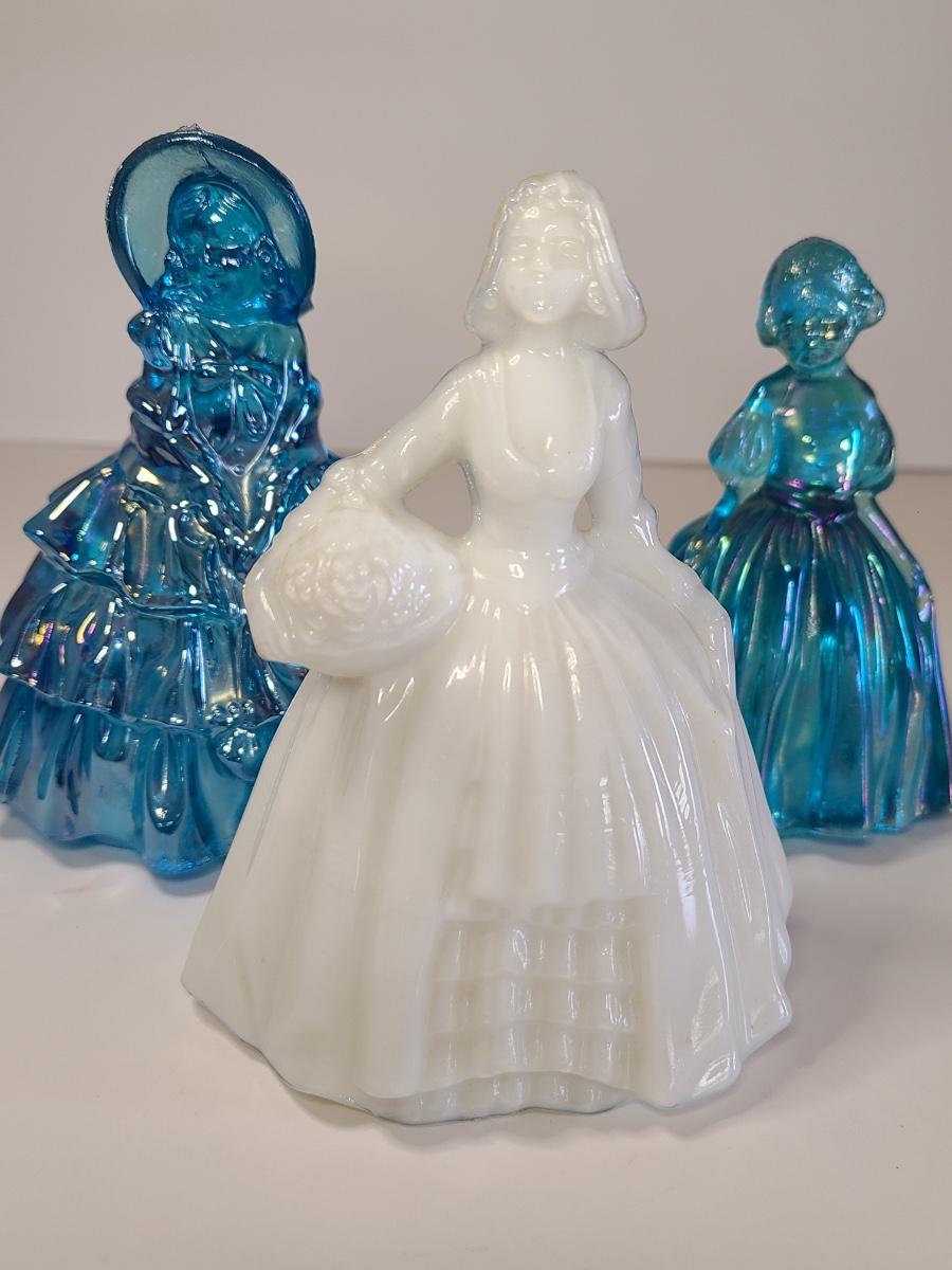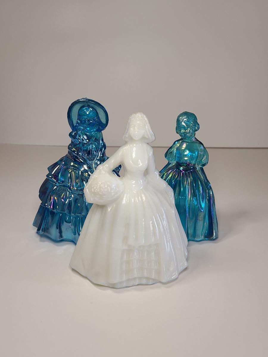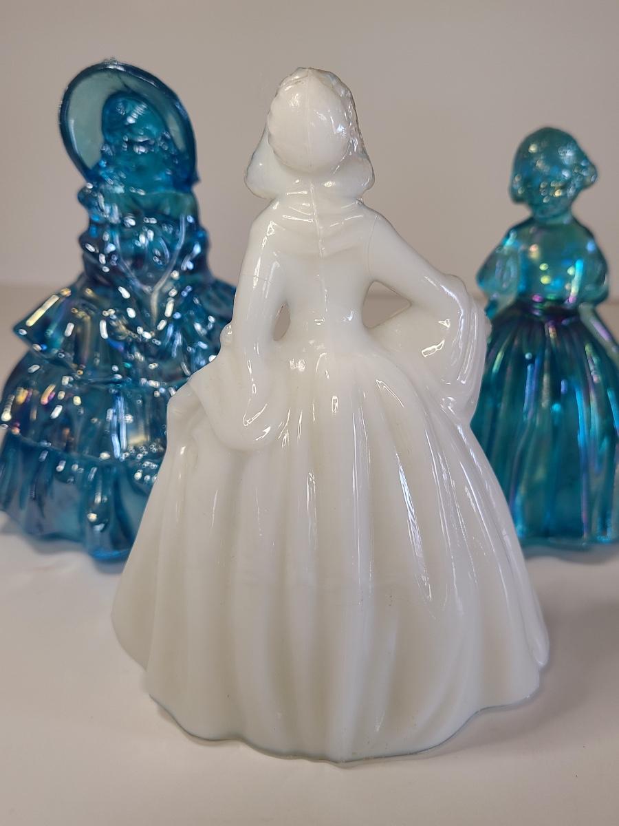 Lot 72: Milk Glass and Carnival Glass Victorian Lady Figurines