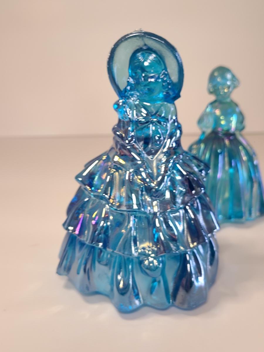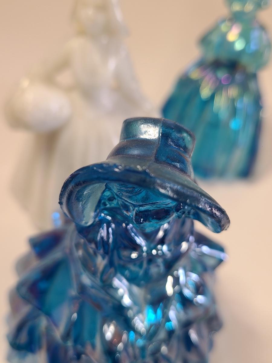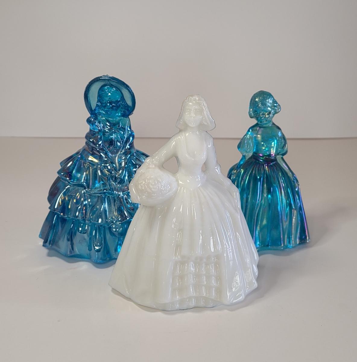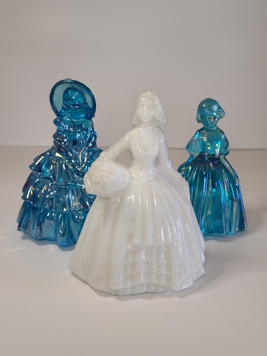 Lot 72: Milk Glass and Carnival Glass Victorian Lady Figurines