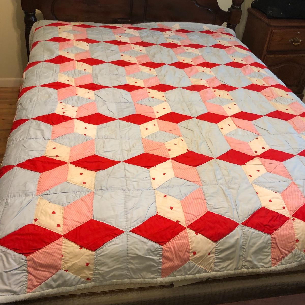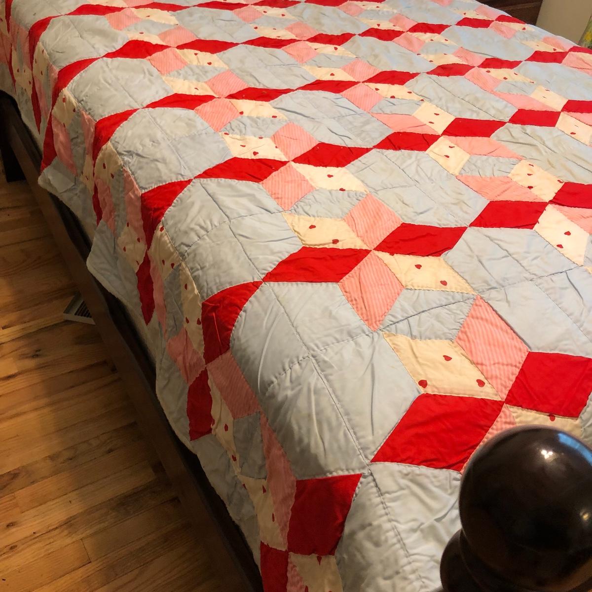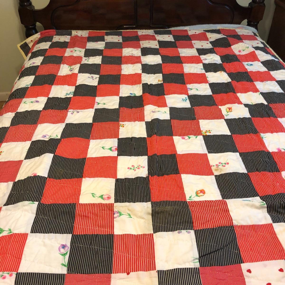 A stunning collection of quilts in a variety of sizes. Quilts are shown on queen sized bed that is not included but available in lot 7. See all the great workmanship on these beauties. Also includes one hanging piece. Largest quilt measures 84” x 90”.