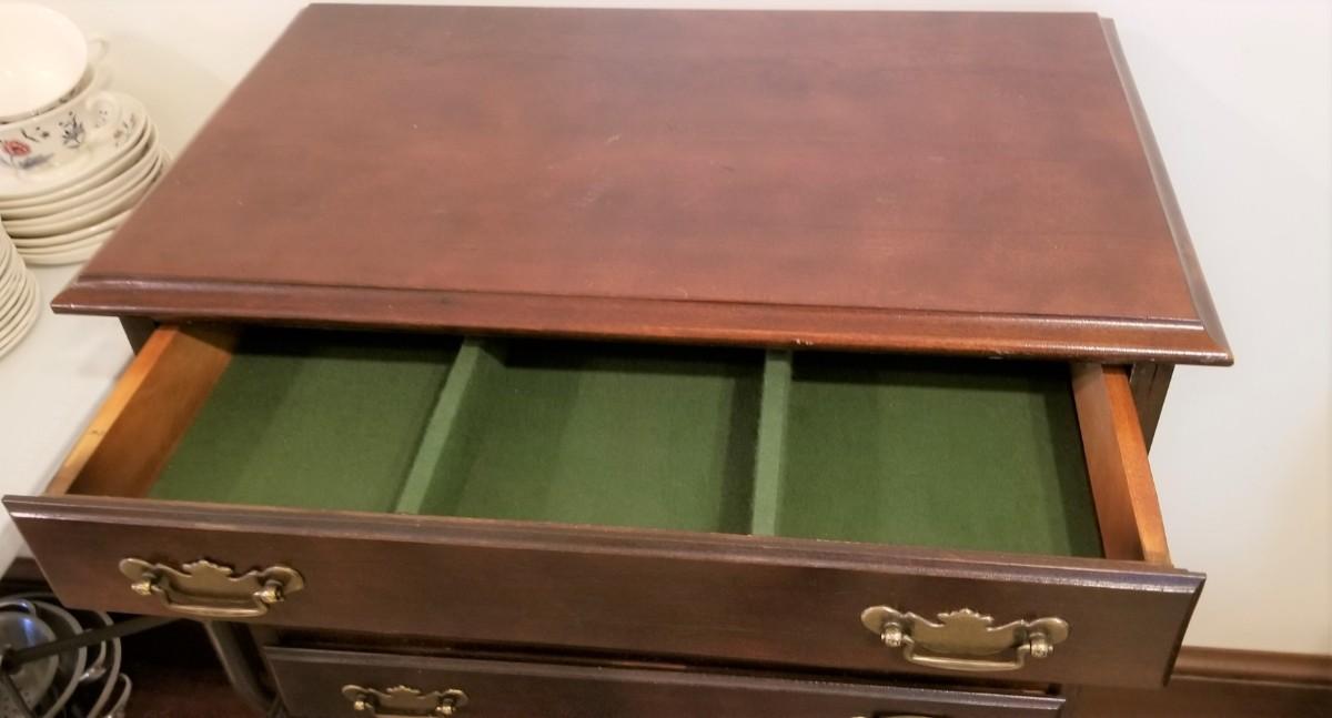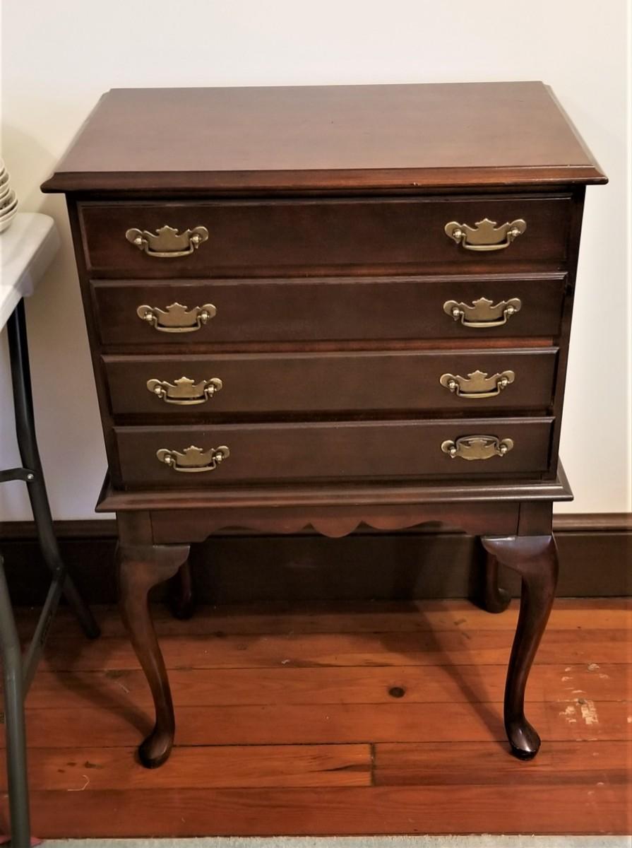 Lot #72 Queen Anne Style 4 drawer Silver Chest