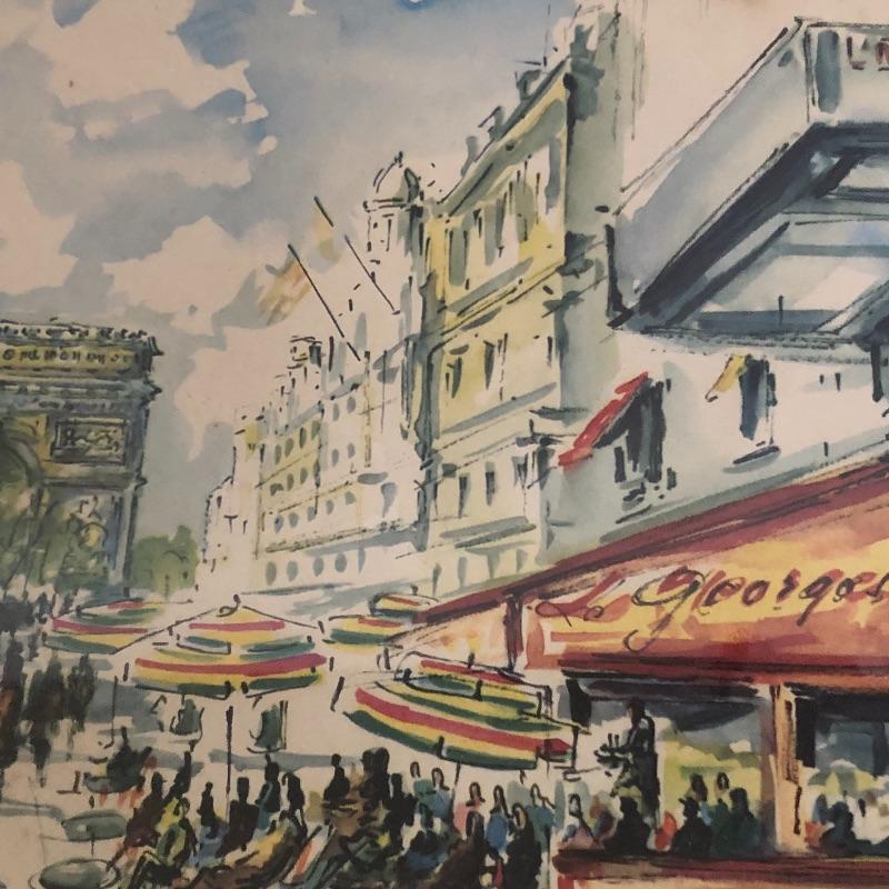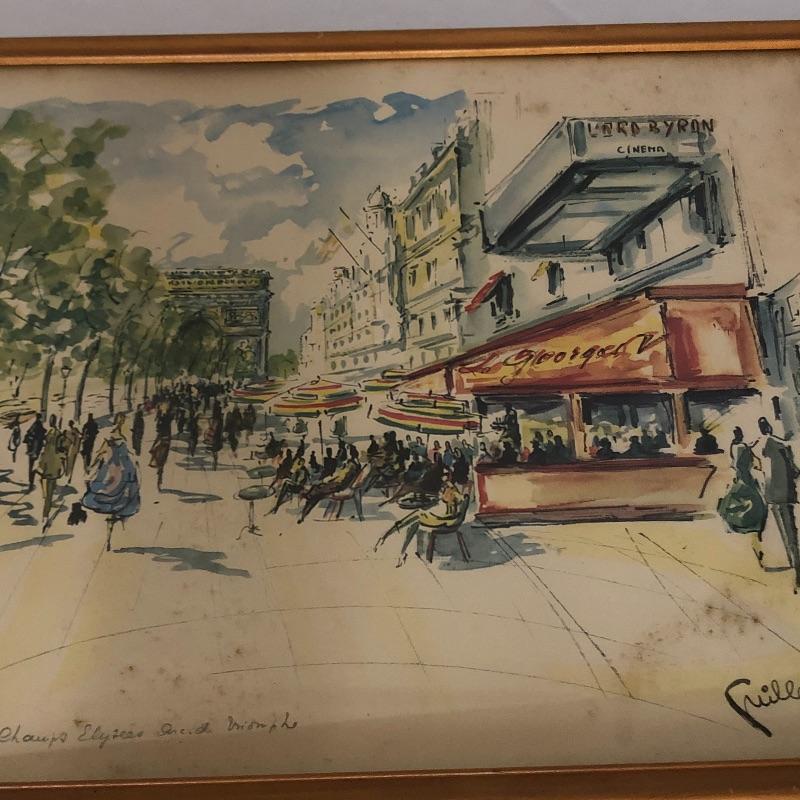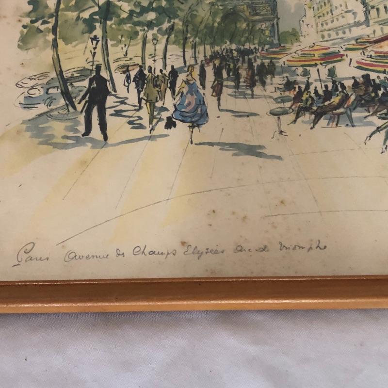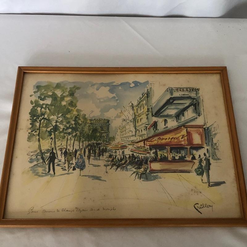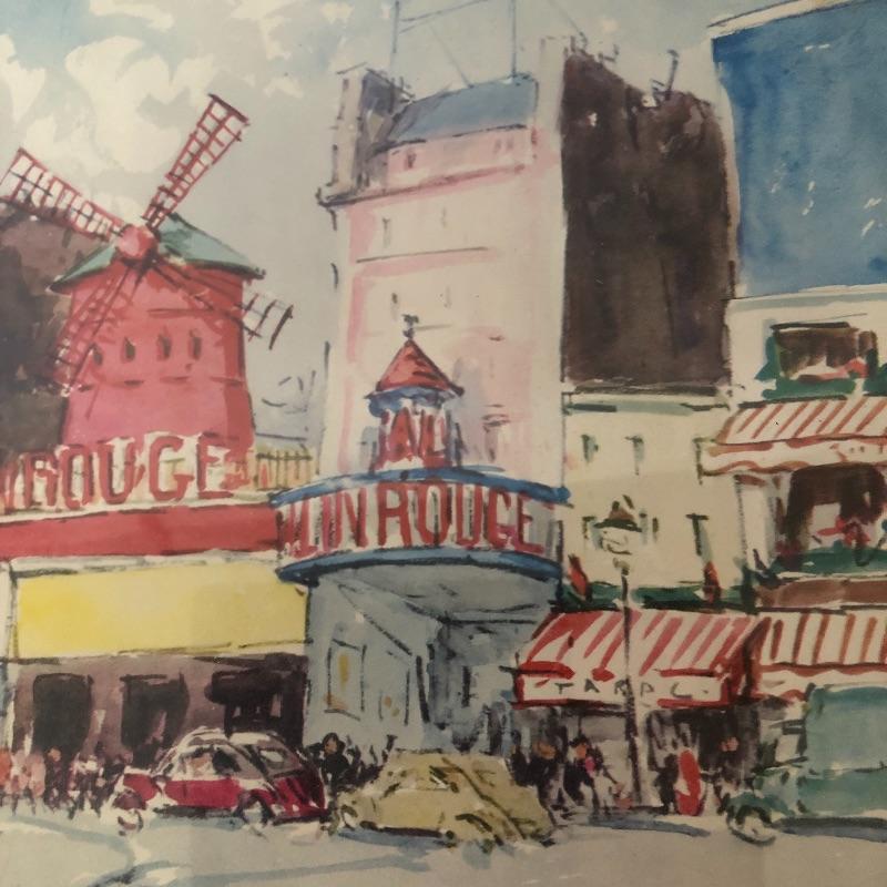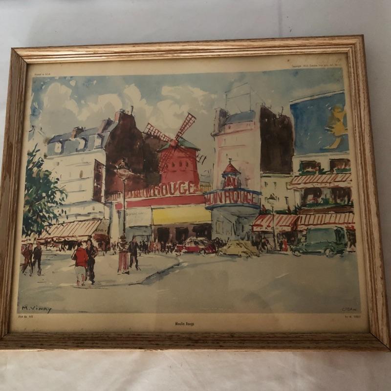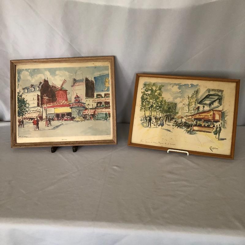 These prints are of two French scenes- Moulin Rouge and the Champs Elysees Arch of Triumph. Please see photos for print numbers and age related discoloration. The Moulin Rouge print measures 18” x 15”. The French scene measures approximately 16.5” x 13”. Shipping Available.