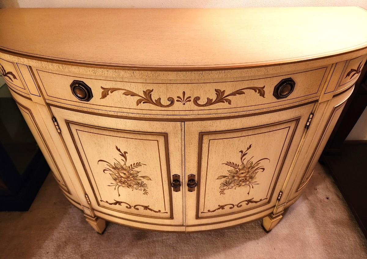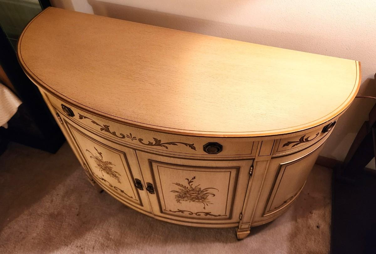 Lot #72 Vintage demi-lune Decorator Side Cabinet