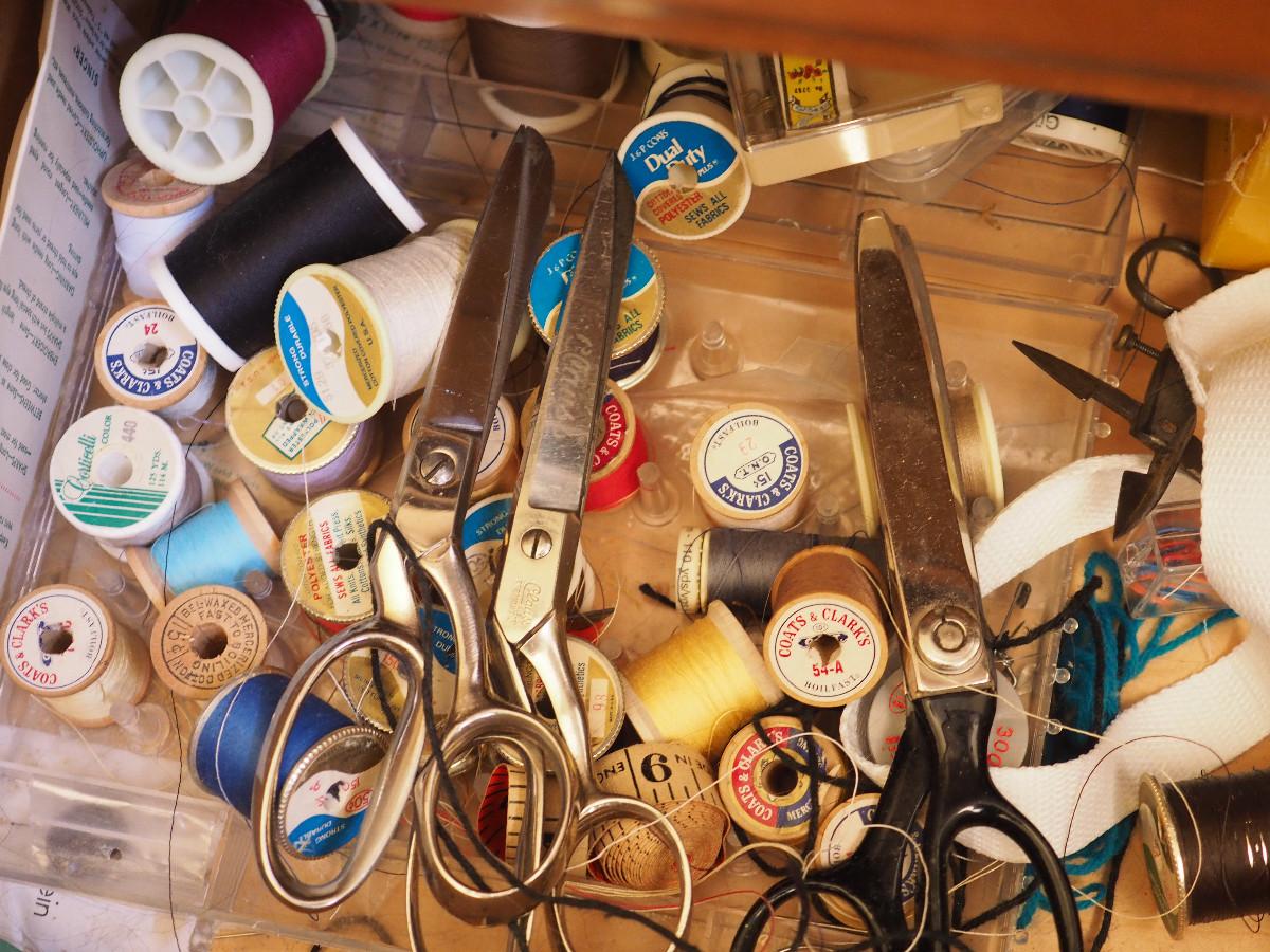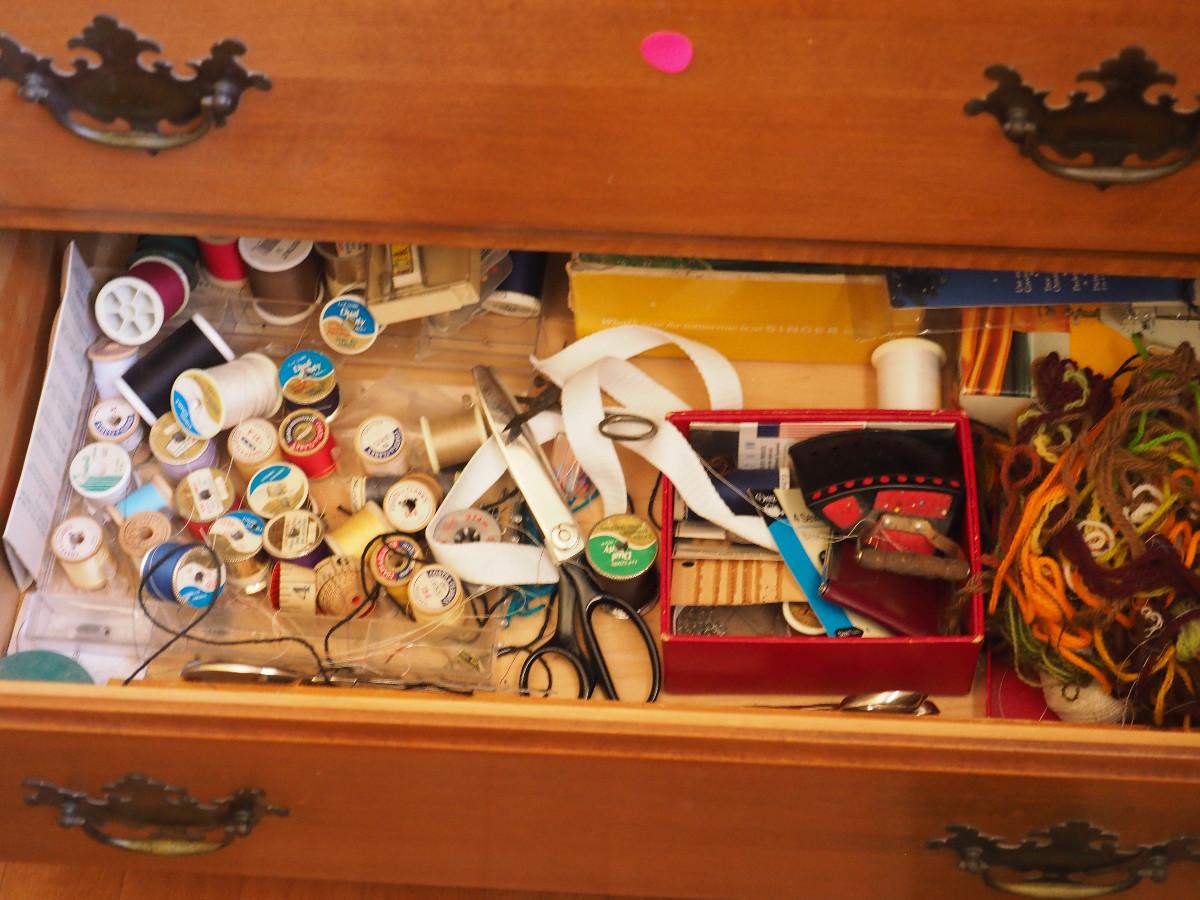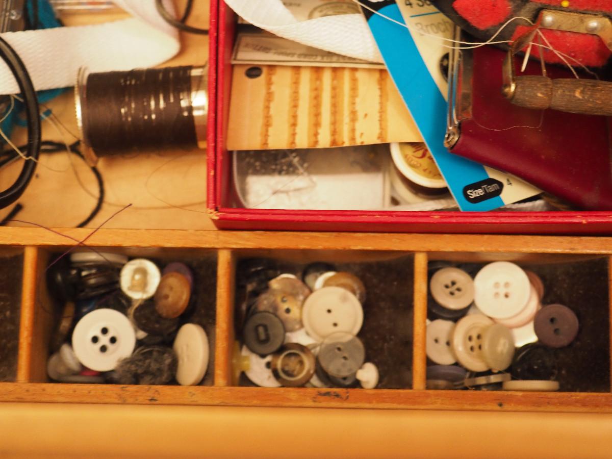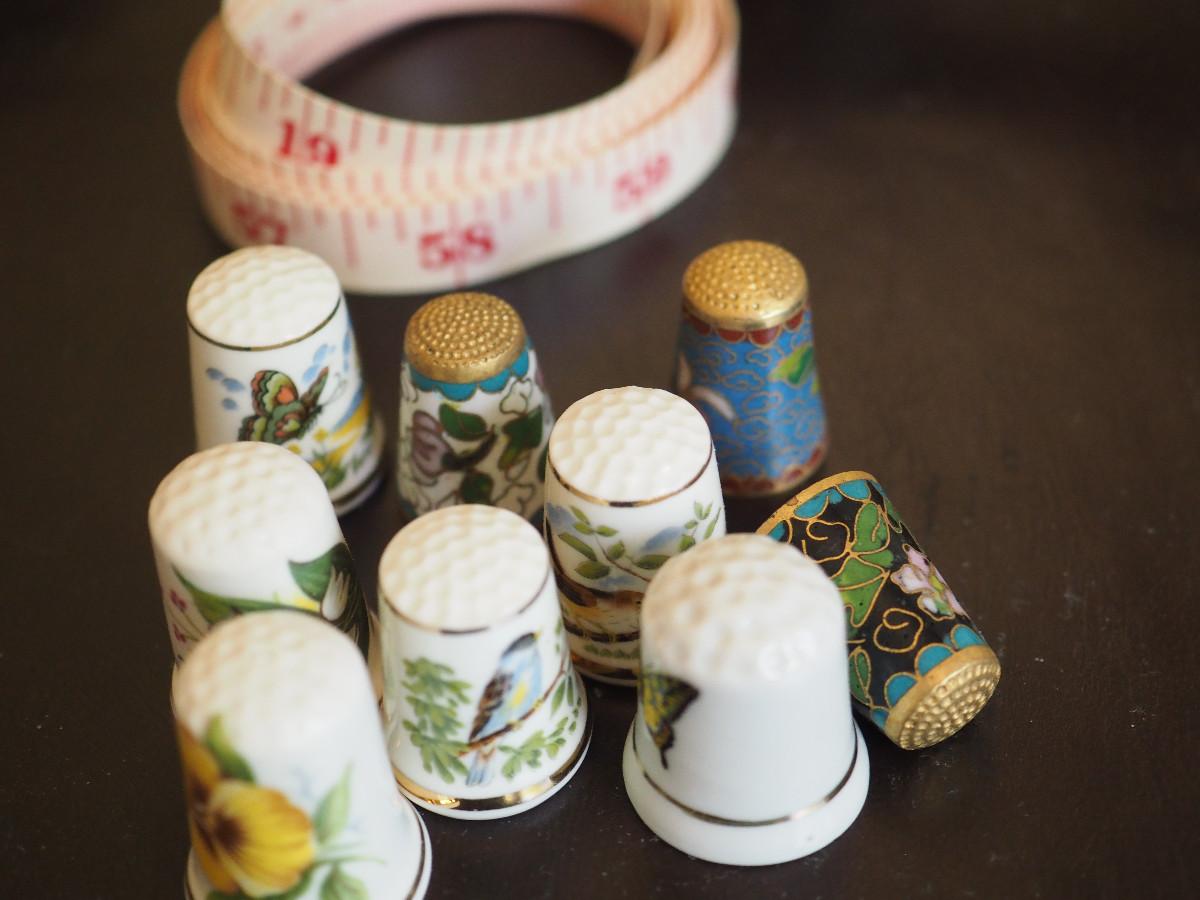 Lot 72 Vintage Singer "Touch-o-matic with manual and accessories: Large sewing lot with attachments, straight stitch machine with case, iron, thimble collection, Drawer full of thread, buttons, and other sewing items, steam iron. Iron and machine are untested, has foot petal and cord.