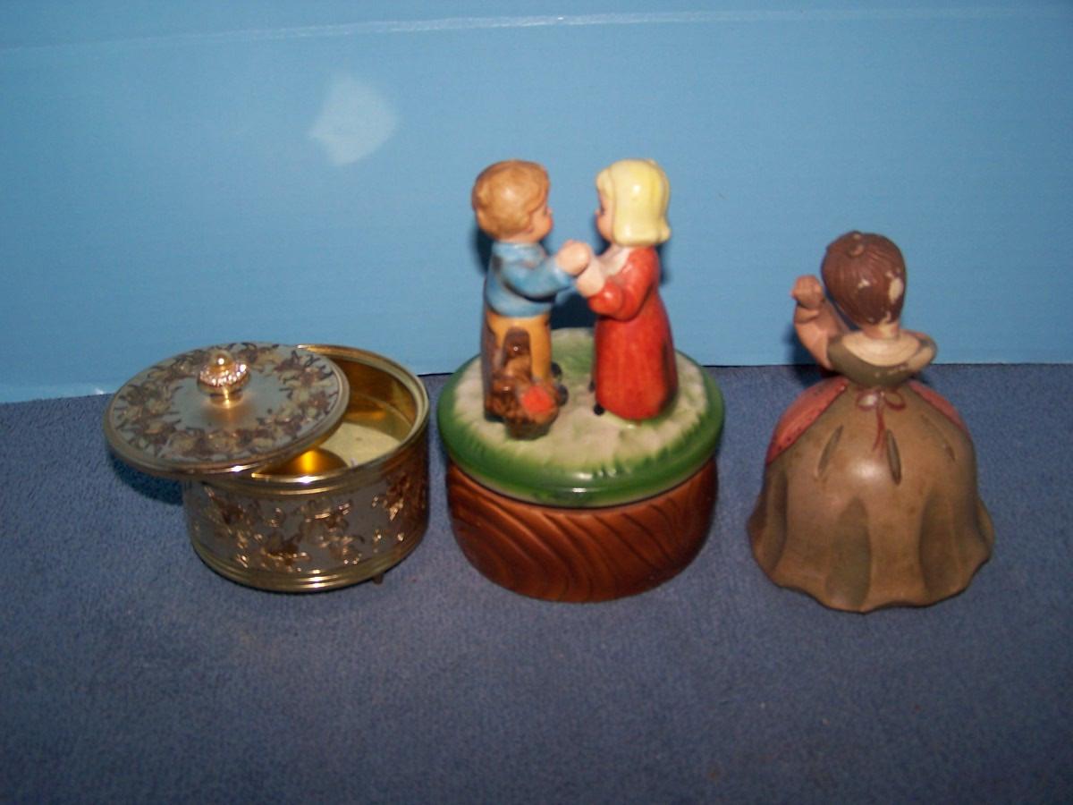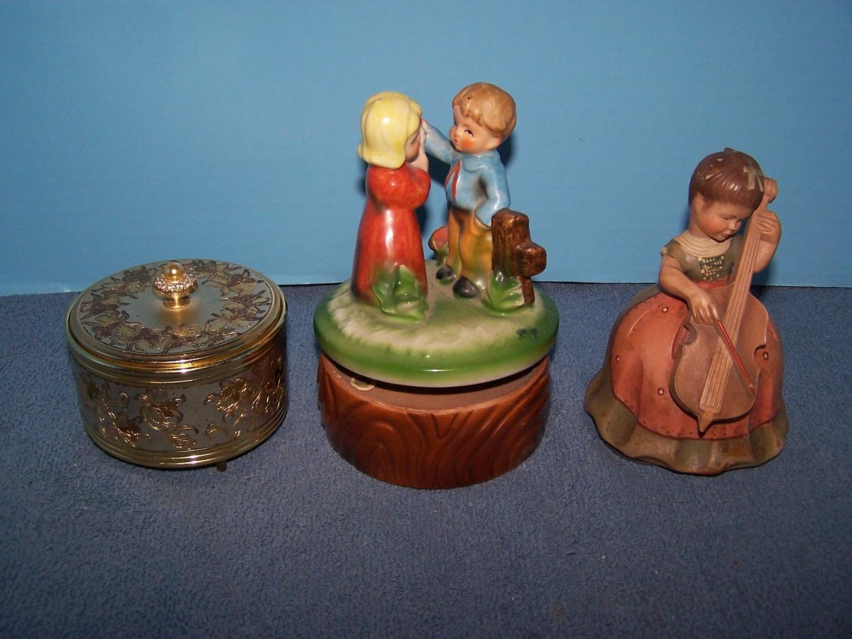 SOME WONDERFUL COLLECTABLE MUSIC BOXES! 2 WORK, A LITTLE SLOWLY-SOME LIGHT WEAR.. COUPLE-6'' TALL.. ANRI NEEDS HELP...
