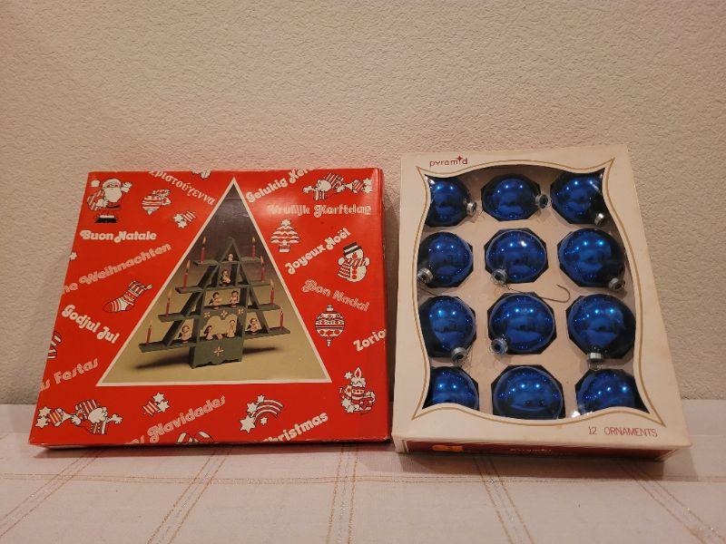 Lot 720: Vintage Wood Christmas Tree w/ Figures 🎄 and Christmas Ornaments