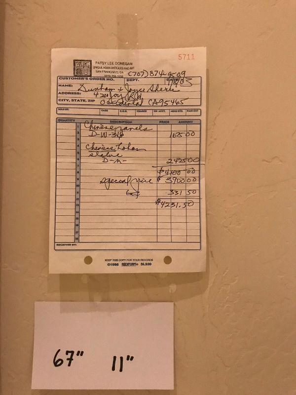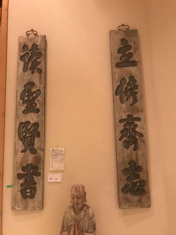 2 Chinese wood carved panels h 67" x w 11" originally $1,675