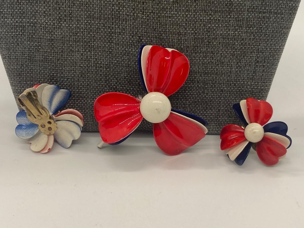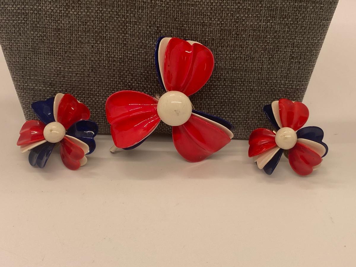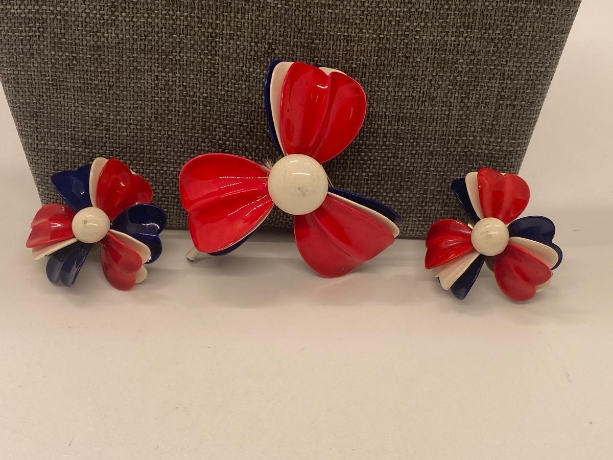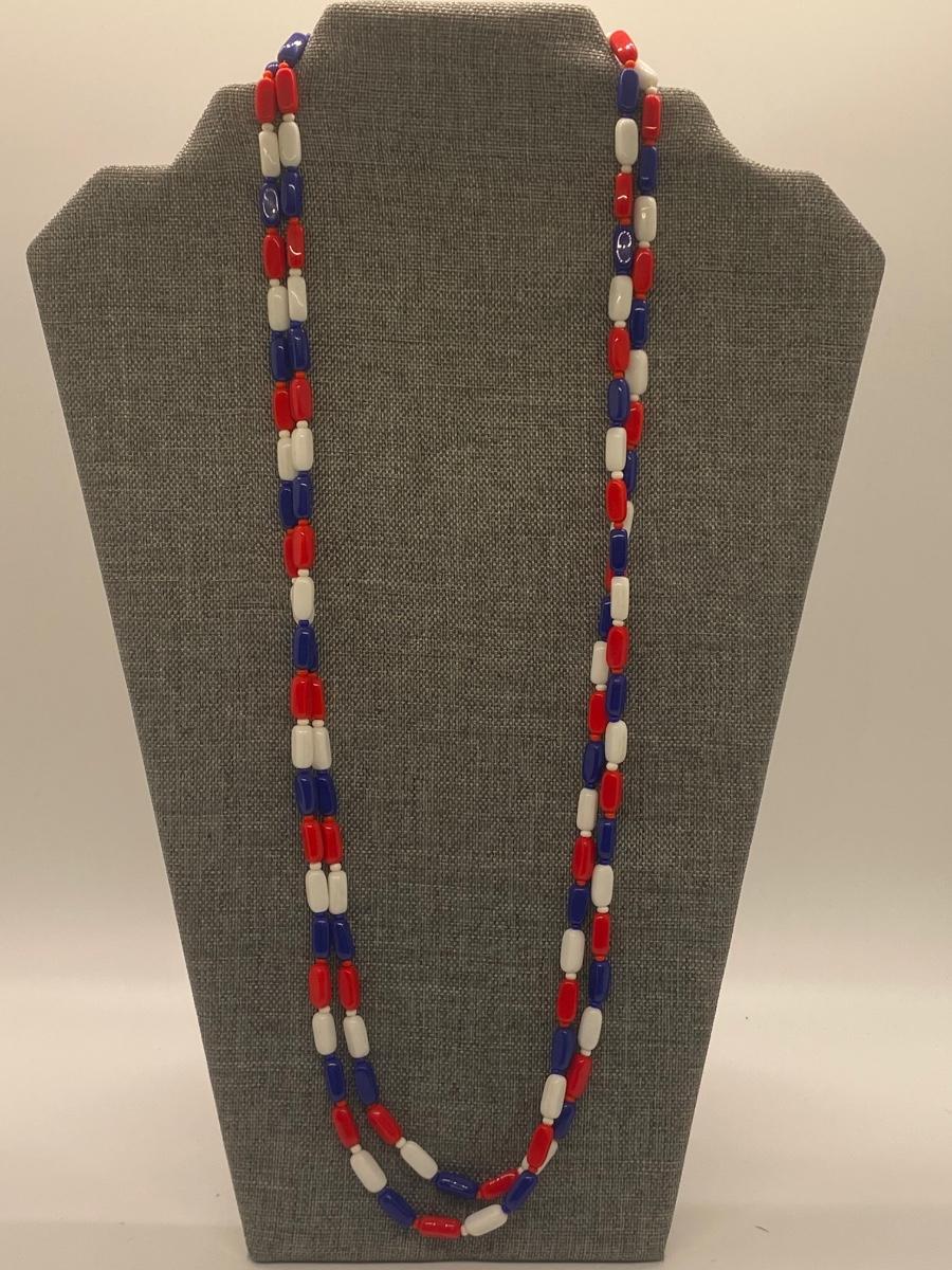 Matching set of red, white and blue beaded necklaces, pin and earrings. Lot also includes coin necklace. Please see all pictures as they are the best representation of the items. The pictures show condition, measurements if taken, and what is included in the lot. Due to the large amount that we photograph and the time frame, we are not always able to take measurements. All items unless noted, are pre-owned and have been used. If you purchased furniture, you must bring help. We do not allow one person to carry large furniture out on their own. Bring help, tools and a truck for the safety of our client’s homes, and your personal safety. Any damages that result to the property including walls, and floors due to moving of the furniture will be charged to the buyer. Company policy. Thank you.