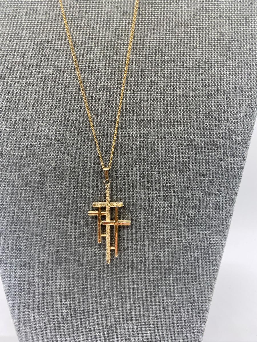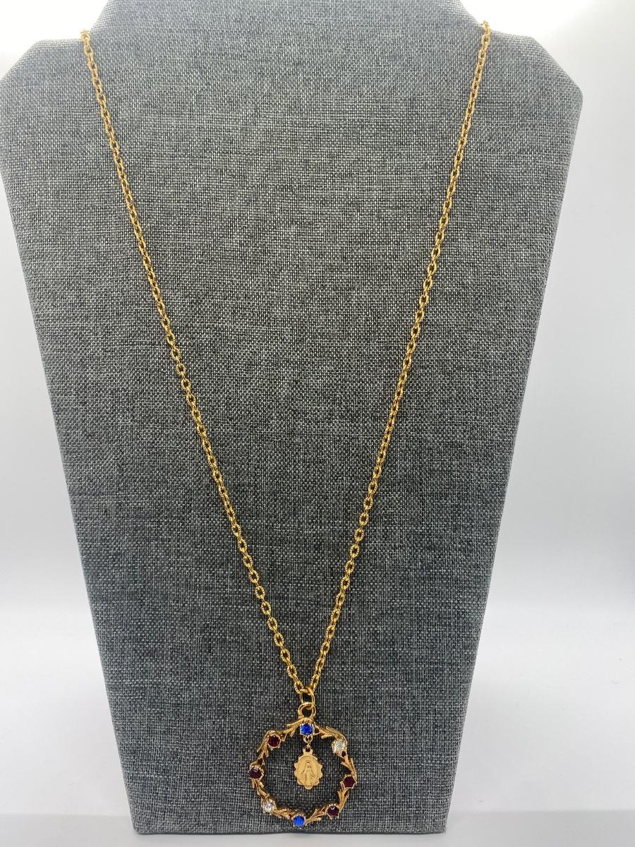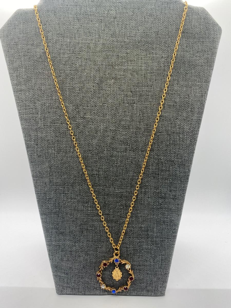 Two Cross pendant on chains and chain with St. Mary pendant. Please see all pictures as they are the best representation of the items. The pictures show condition, measurements if taken, and what is included in the lot. Due to the large amount that we photograph and the time frame, we are not always able to take measurements. All items unless noted, are pre-owned and have been used. If you purchased furniture, you must bring help. We do not allow one person to carry large furniture out on their own. Bring help, tools and a truck for the safety of our client’s homes, and your personal safety. Any damages that result to the property including walls, and floors due to moving of the furniture will be charged to the buyer. Company policy. Thank you.