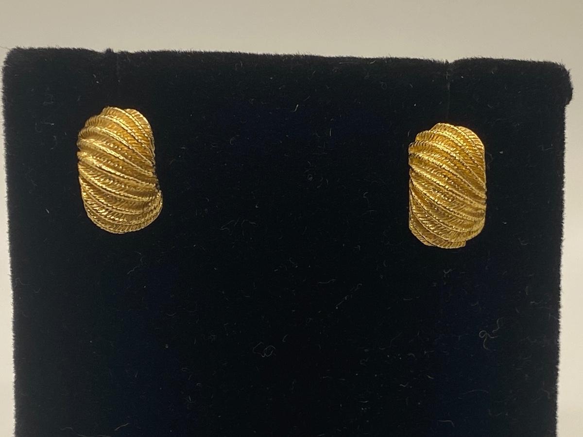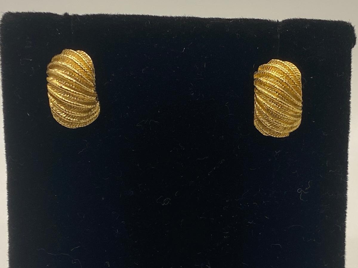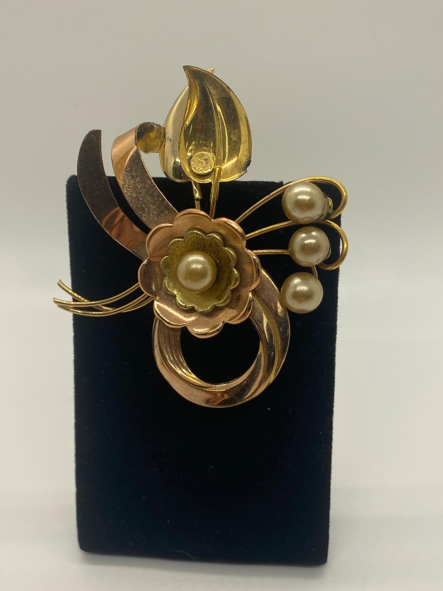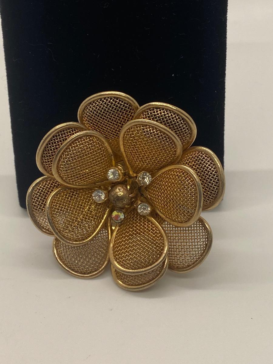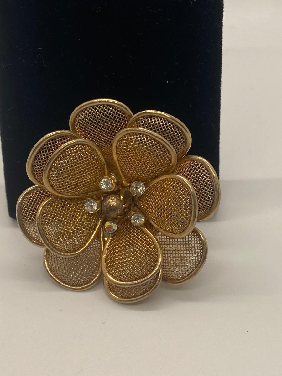 Set of four vintage gold tone brooches and goldtone pierced earrings. Please see all pictures as they are the best representation of the items. The pictures show condition, measurements if taken, and what is included in the lot. Due to the large amount that we photograph and the time frame, we are not always able to take measurements. All items unless noted, are pre-owned and have been used. If you purchased furniture, you must bring help. We do not allow one person to carry large furniture out on their own. Bring help, tools and a truck for the safety of our client’s homes, and your personal safety. Any damages that result to the property including walls, and floors due to moving of the furniture will be charged to the buyer. Company policy. Thank you.