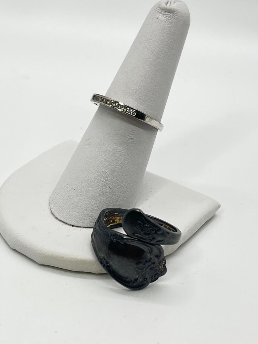Two Size 7 Silver Rings - Sterling with CZ and baby spoon ring. Please see all pictures as they are the best representation of the items. The pictures show condition, measurements if taken, and what is included in the lot. Due to the large amount that we photograph and the time frame, we are not always able to take measurements. All items unless noted, are pre-owned and have been used. If you purchased furniture, you must bring help. We do not allow one person to carry large furniture out on their own. Bring help, tools and a truck for the safety of our client’s homes, and your personal safety. Any damages that result to the property including walls, and floors due to moving of the furniture will be charged to the buyer. Company policy. Thank you.