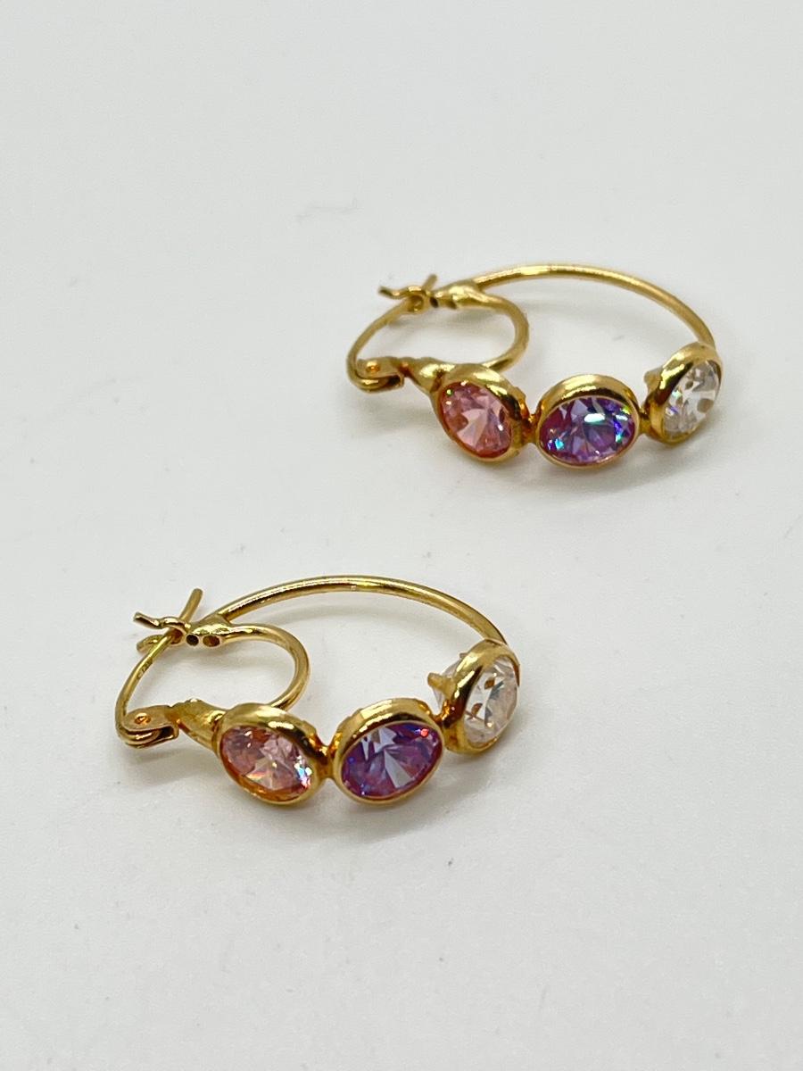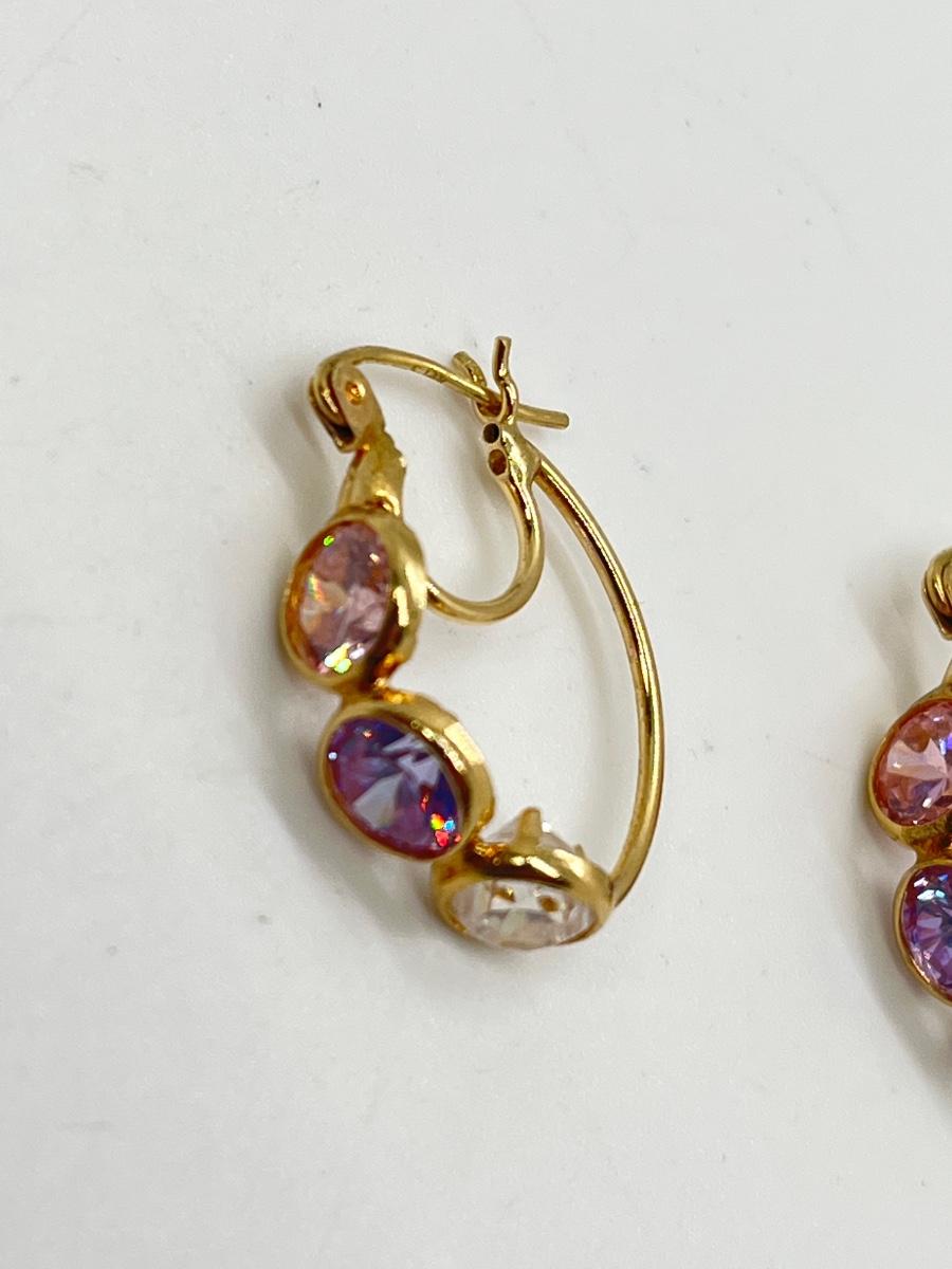LOT 57: 14K Pierced Hoop Earrings with Three Circular Gemstones -  3.5g