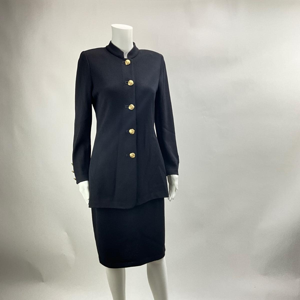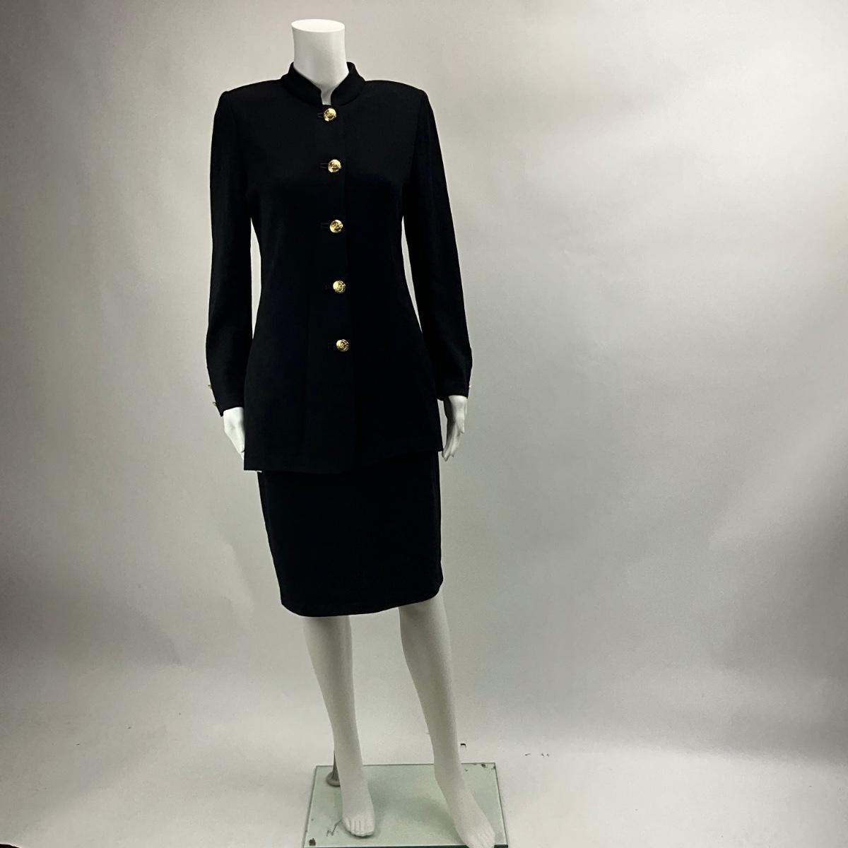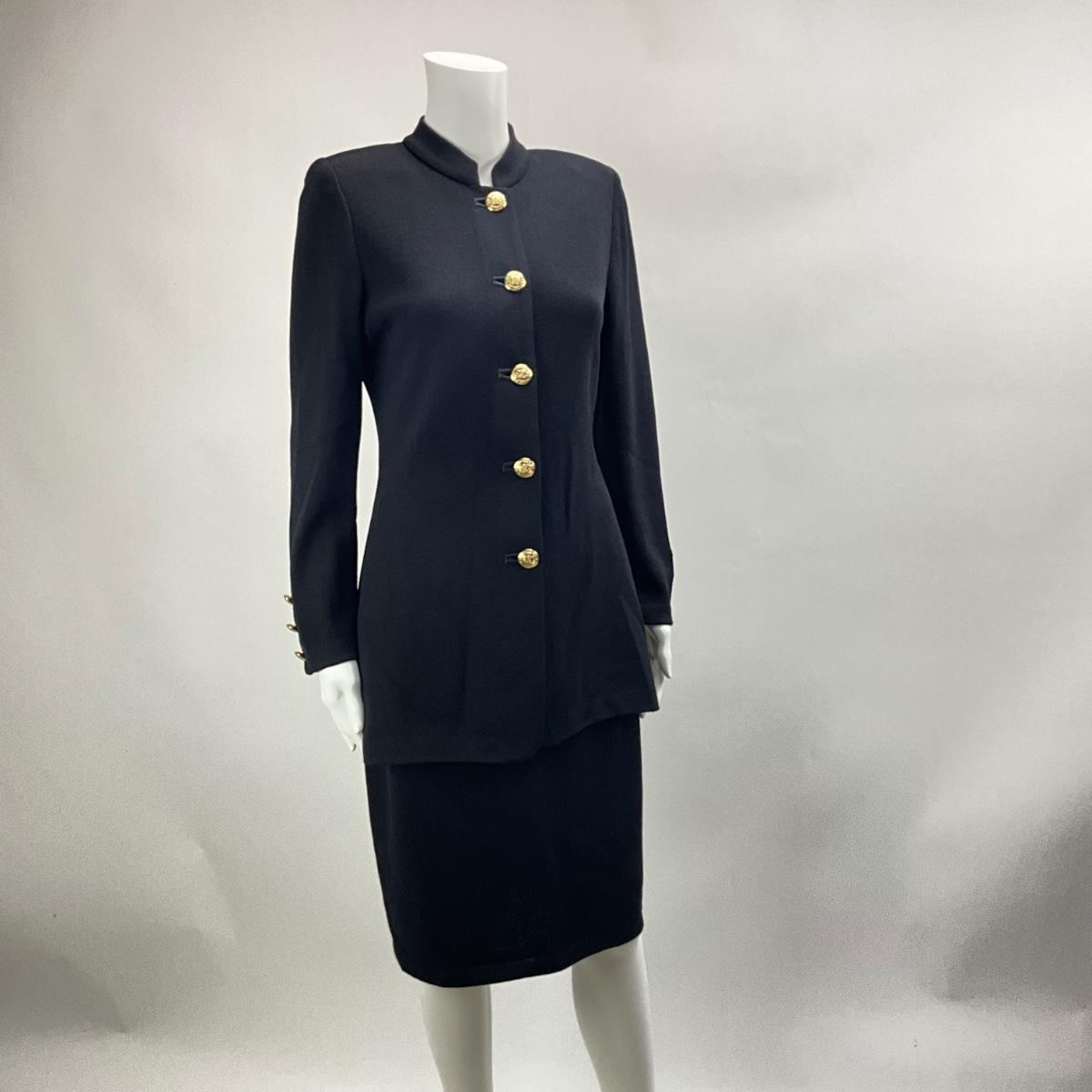 St John Basics Knit Skirt & Jacket Set With Large Gold Buttons
