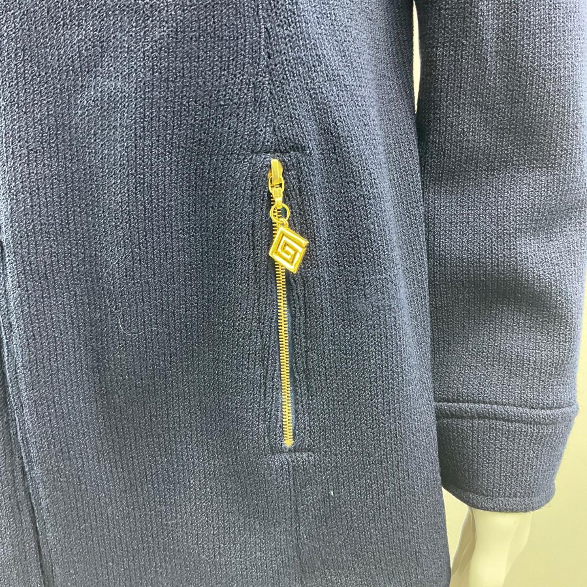 St John Collection, Blue Knit Suit ( Jacket & Skirt ) Gold Tone Zipper