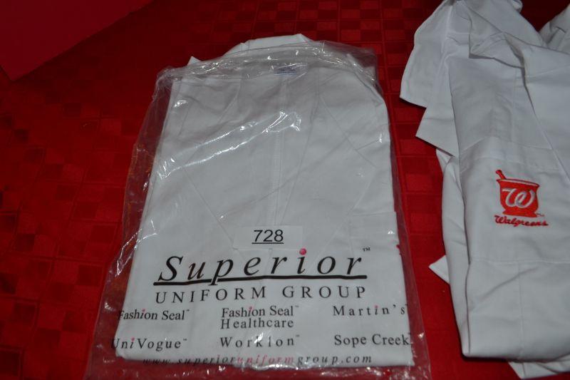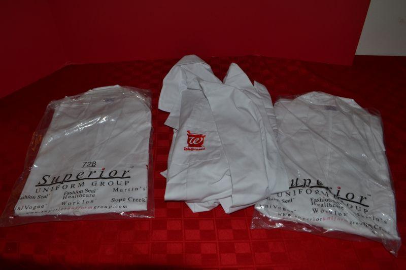 LOT 728. THREE LAB COATS ONE WITH WALGREENS LOGO