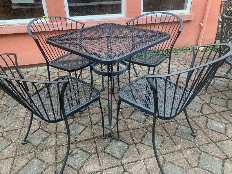 Black Square metal patio table with 4 chairs