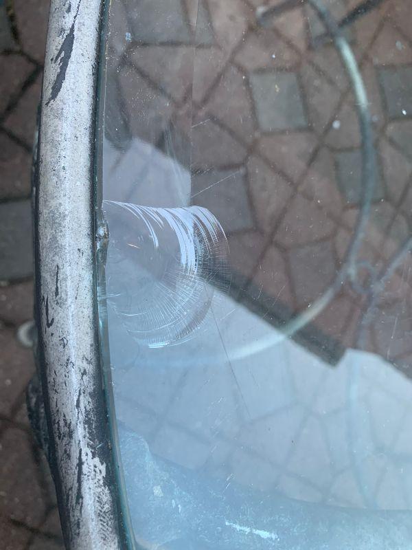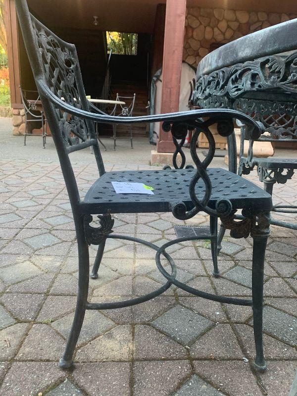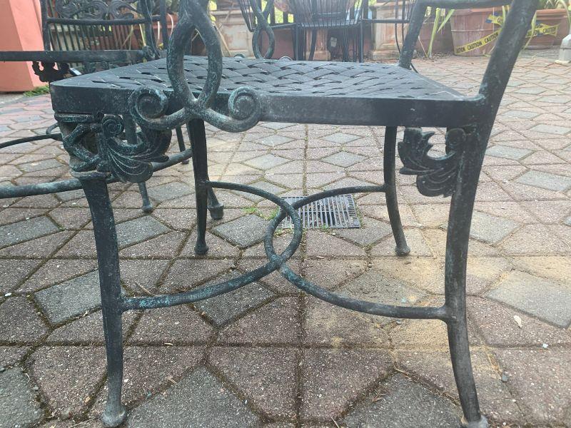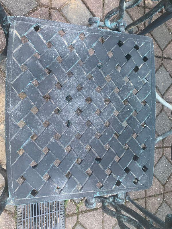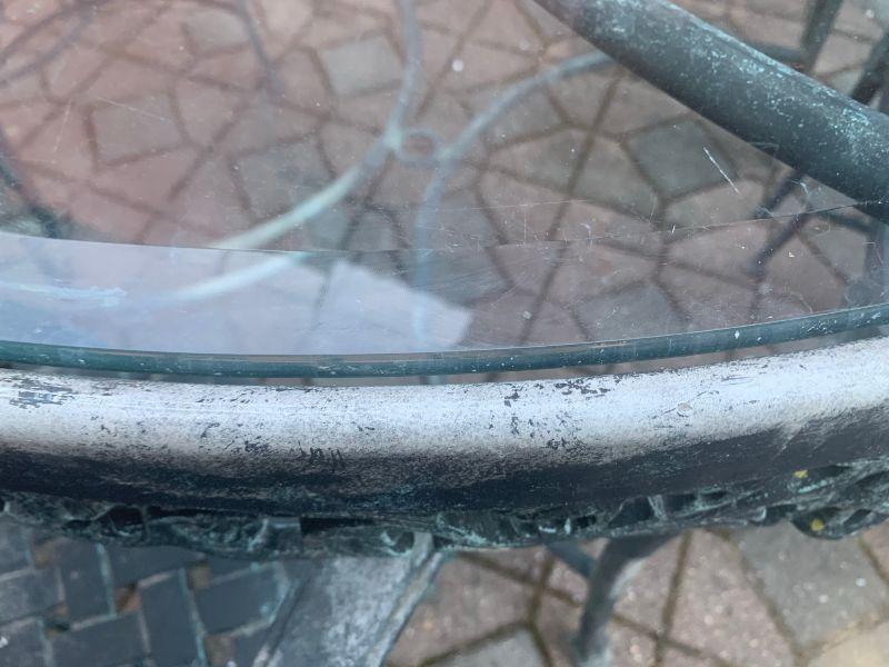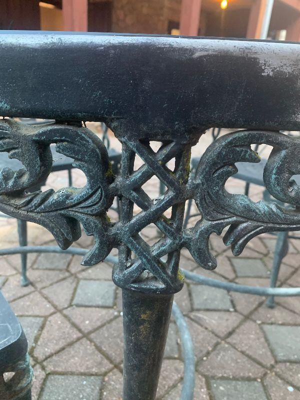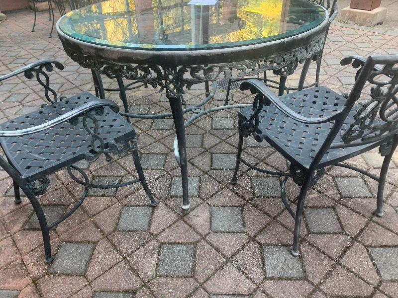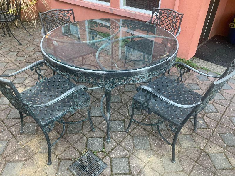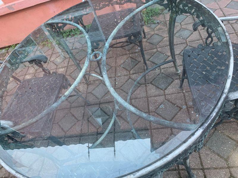 Large glass (as is glass) heavy metal patio table with 4 chairs nice set