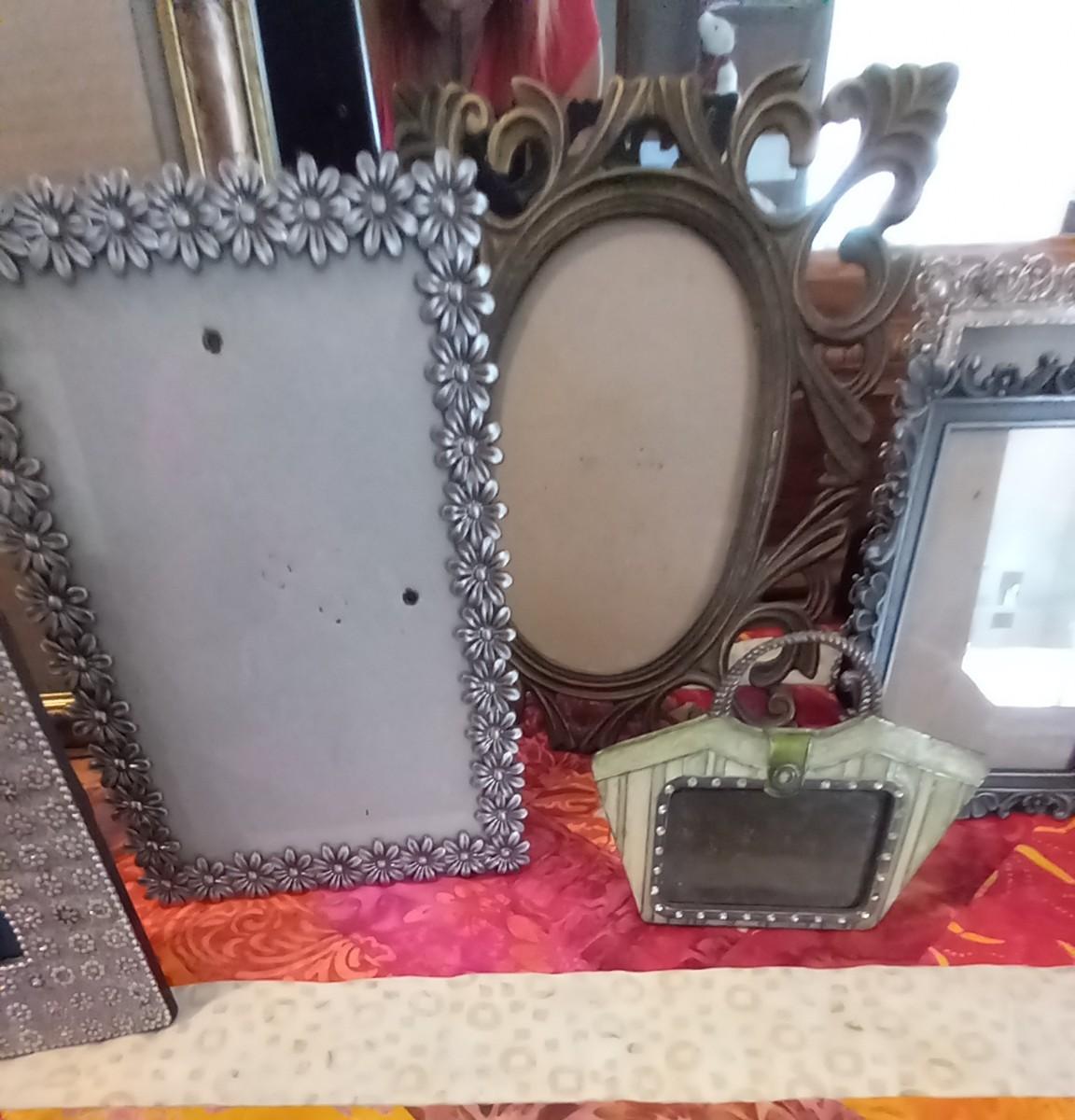 ASSORTMENT OF PICTURE FRAMES AND 2 QUILTED RUNNERS